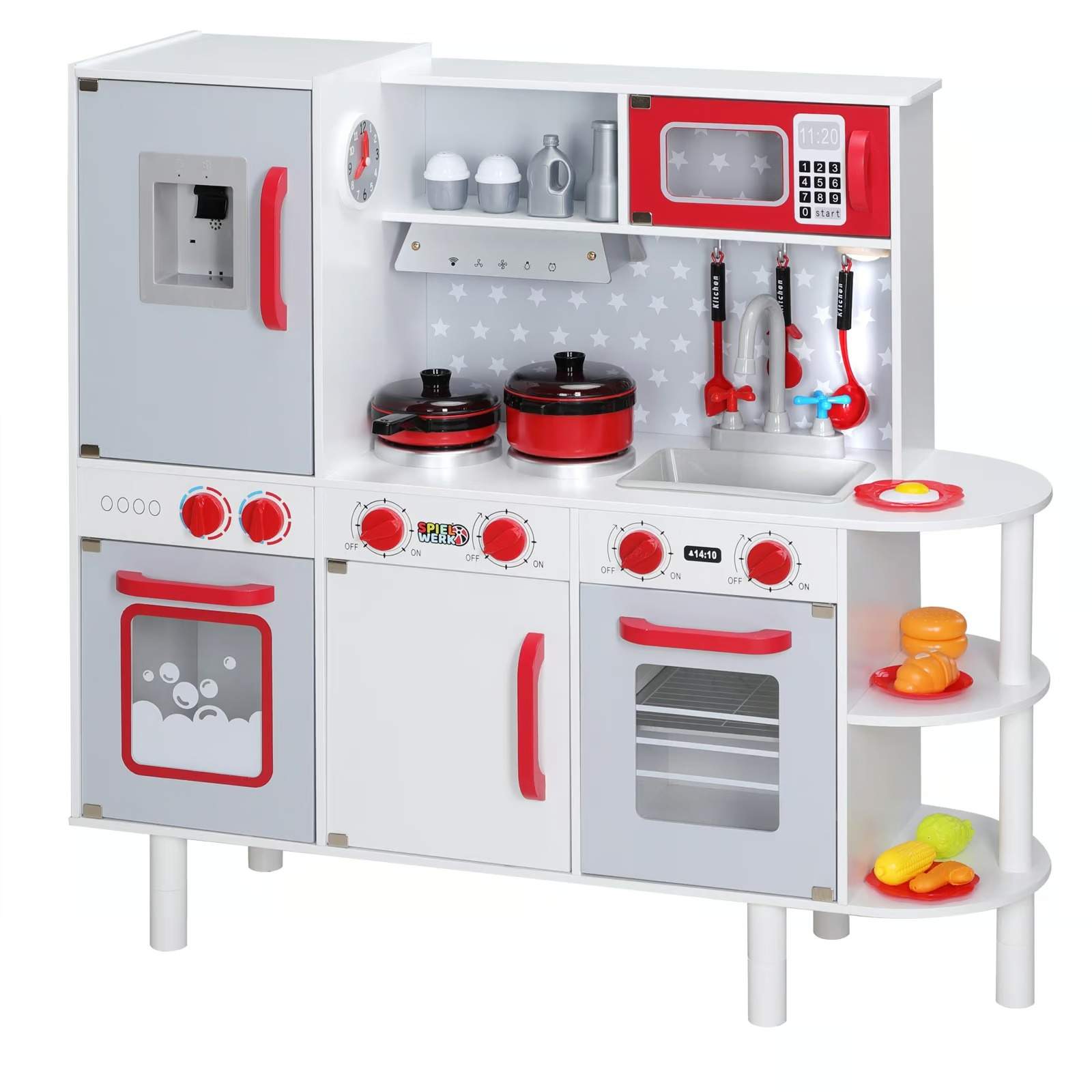 Lekekjøkkensett i tre med 35 tilbehør, justerbar høyde