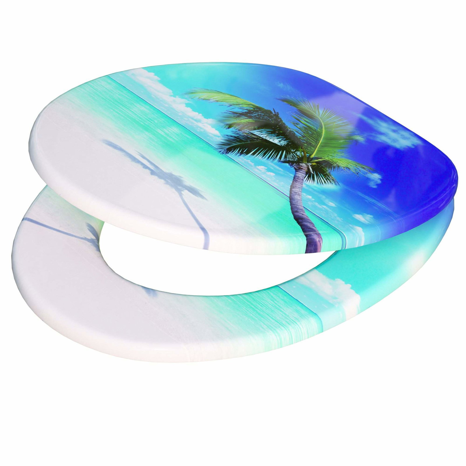 Myklukkende toalettsete, palmedesign, MDF-tre, stillegående