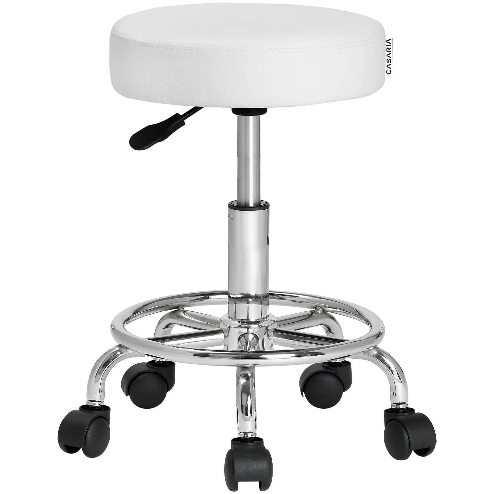 Hvit svingbar krakk i kunstskinn – justerbar, 360 graders rotasjon