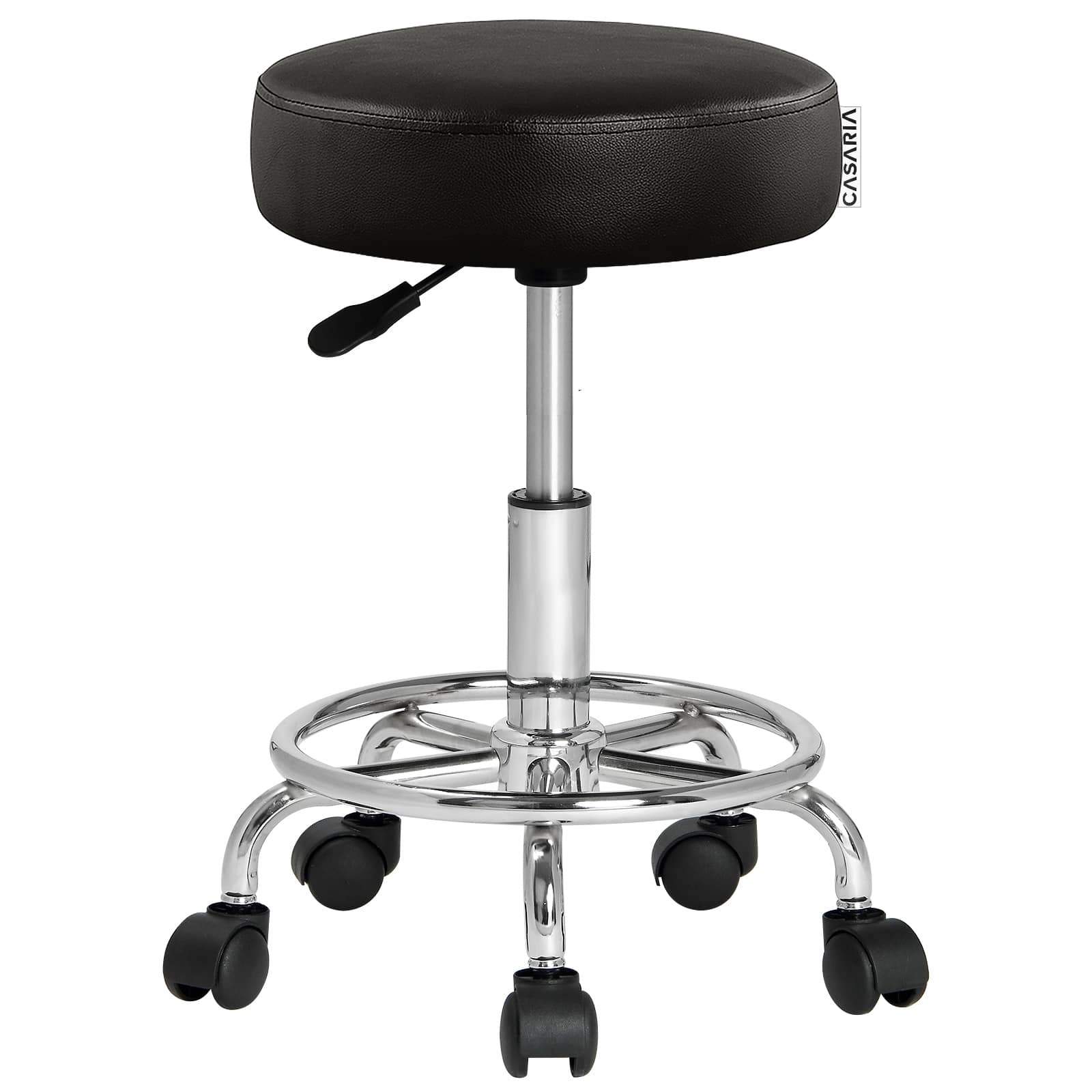 Svart polstret svingbar krakk, justerbar høyde, 360 rotasjon