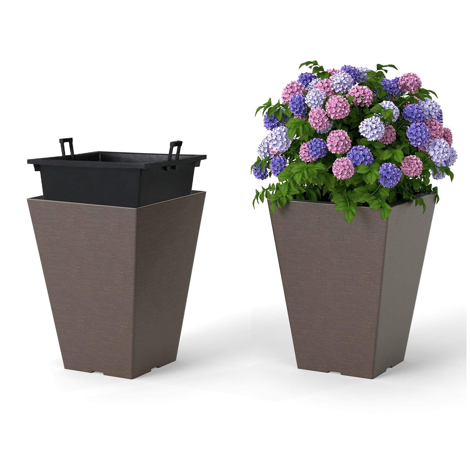 Selvvannende plantekasser – brun, værbestandig, 2-pakning