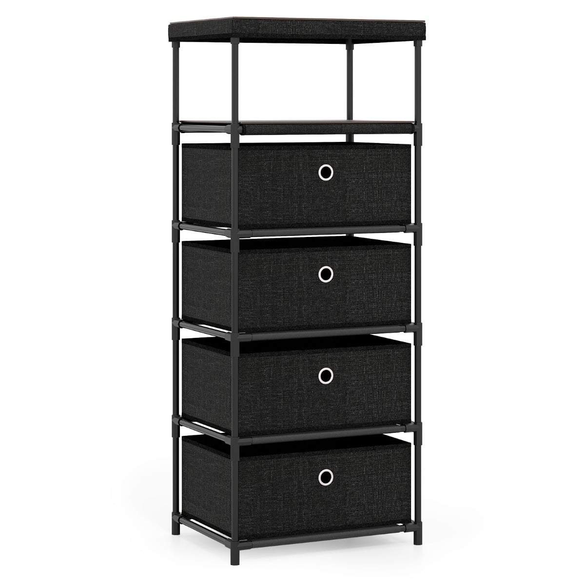 Stoffkommode med 4 skuffer – industriell treplate, metallramme