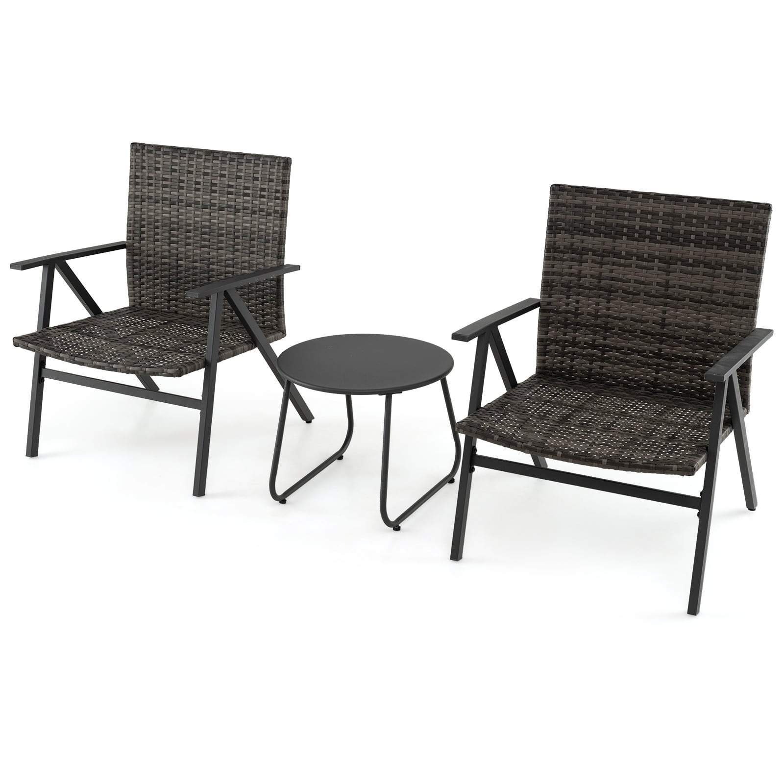 3-delt utendørs bistrosett – rottingseter og metallramme