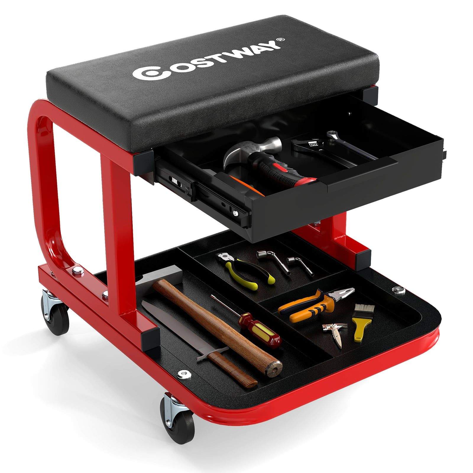 Verkstedkrakk med hjul – 185 kg kapasitet, svart