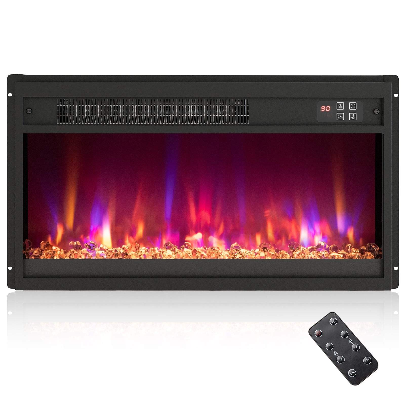 23-tommers elektrisk peisinnsats med fjernstyrte og justerbare flammer