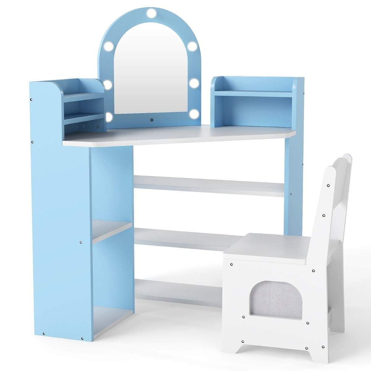 Barnas sminkebordsett med speil og lys – blått