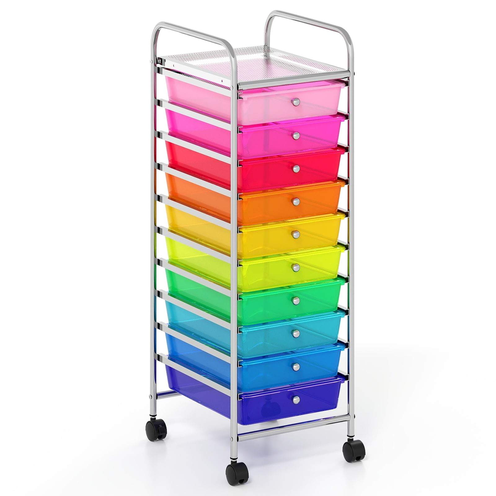 10-skuffers rullevogn med låsbare hjul – fargerik arrangør