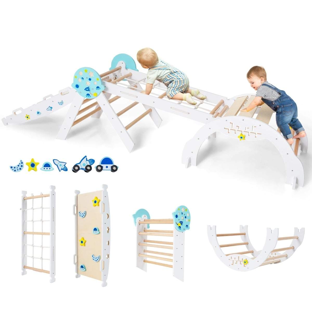 8-i-1 klatresett i tre med sklie og huske