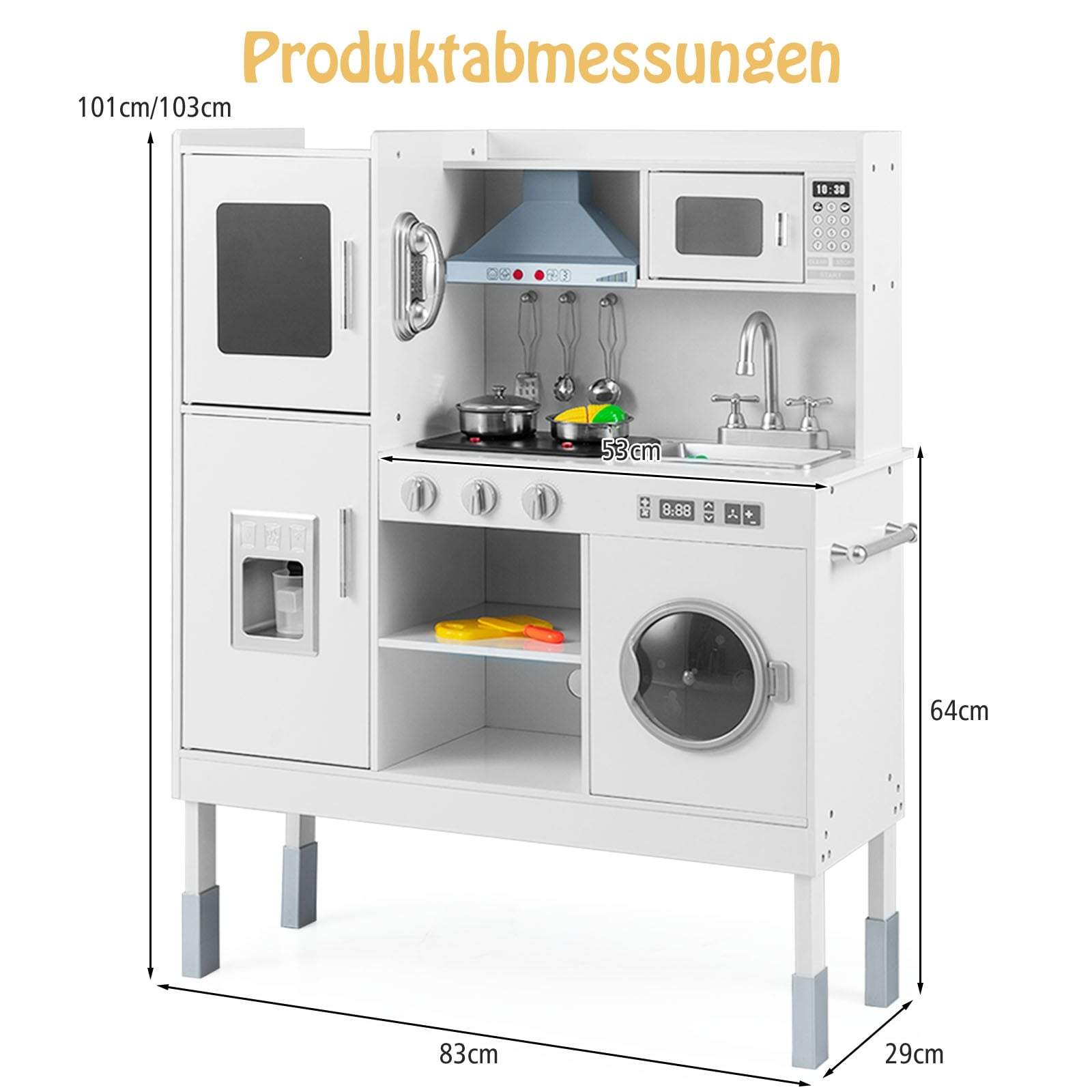 Lekekjøkken i tre med 16 tilbehør, justerbar høyde