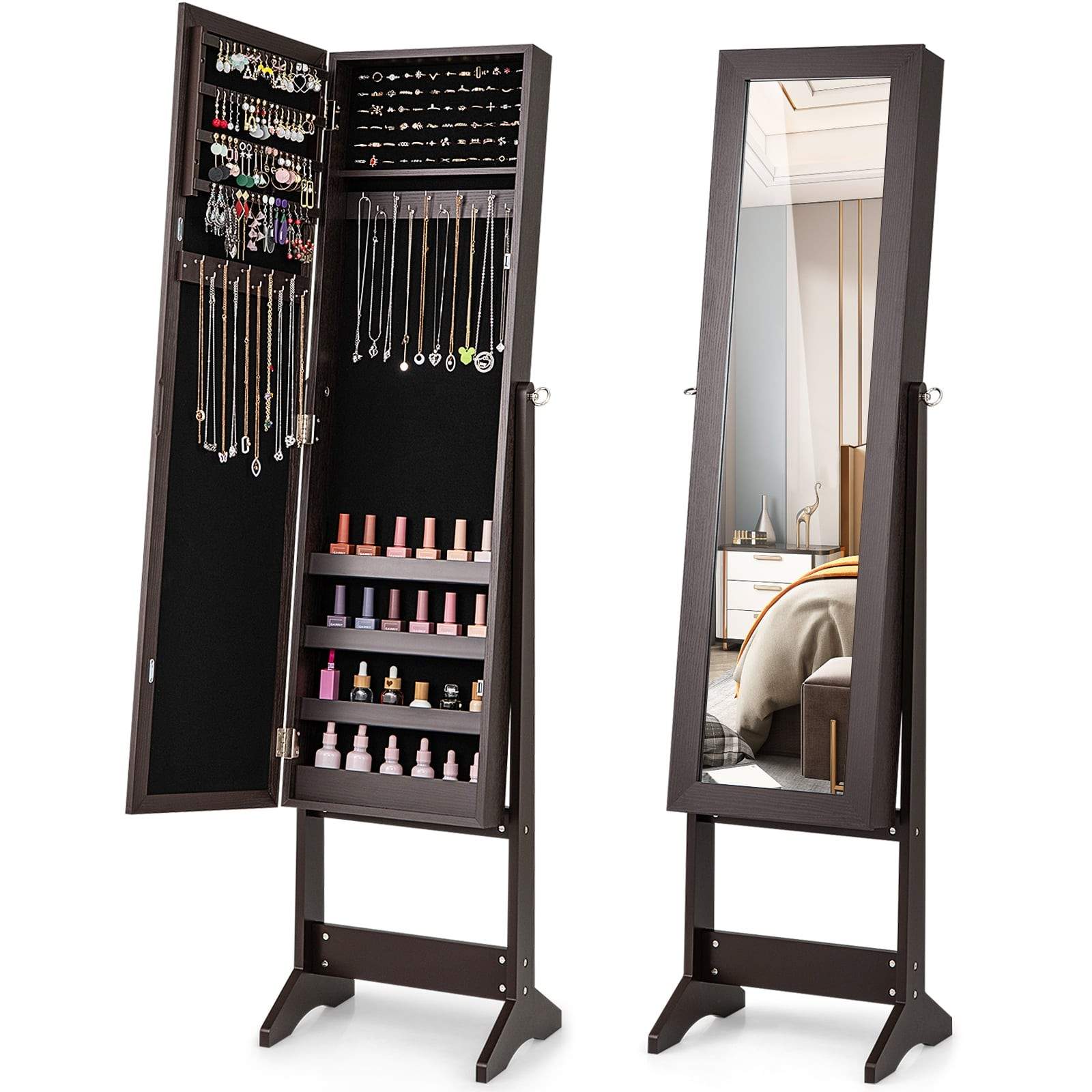Smykkeskap med helfigursspeil – justerbare vinkler
