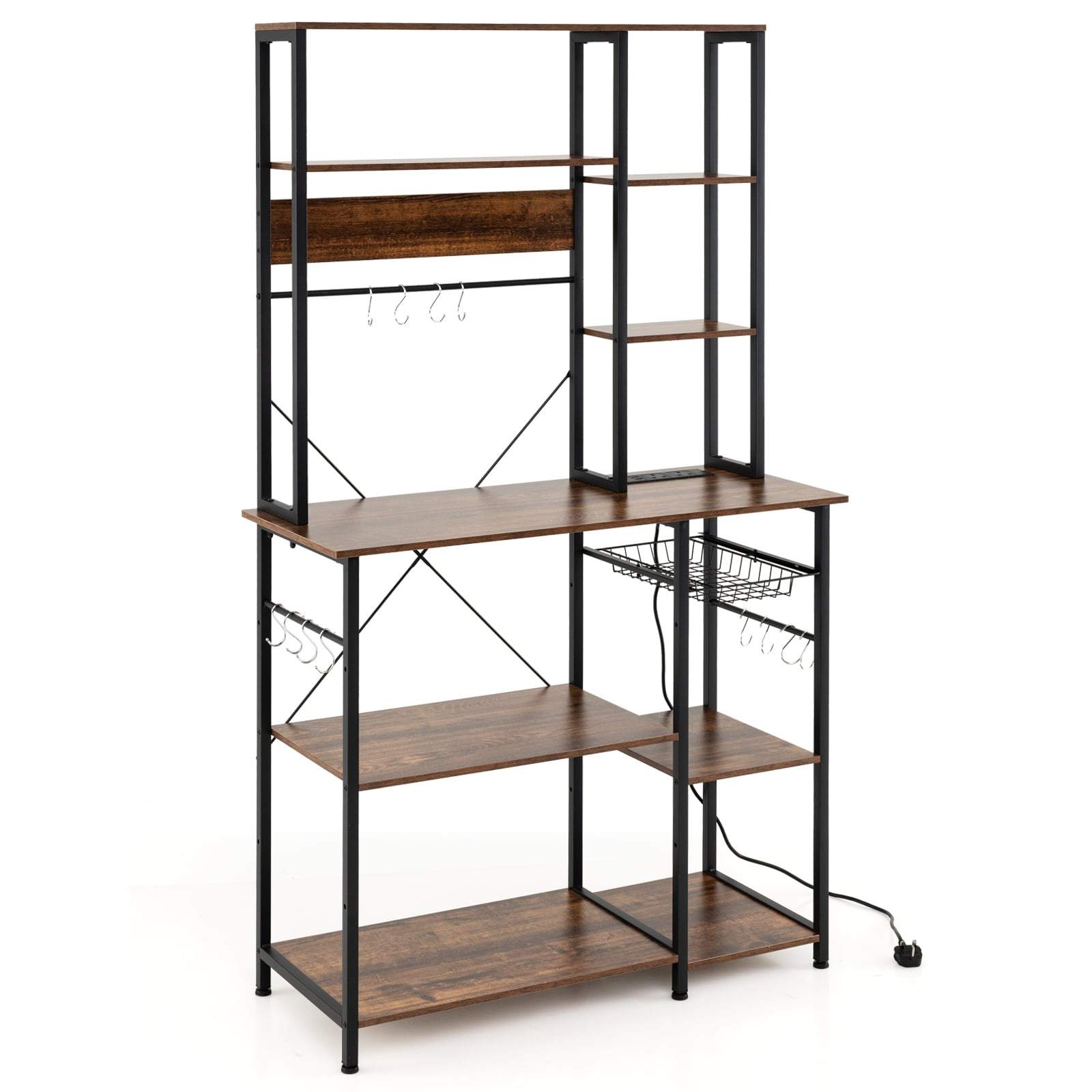 6-etasjers kjøkkenstativ med stikkontakter og trådkurv