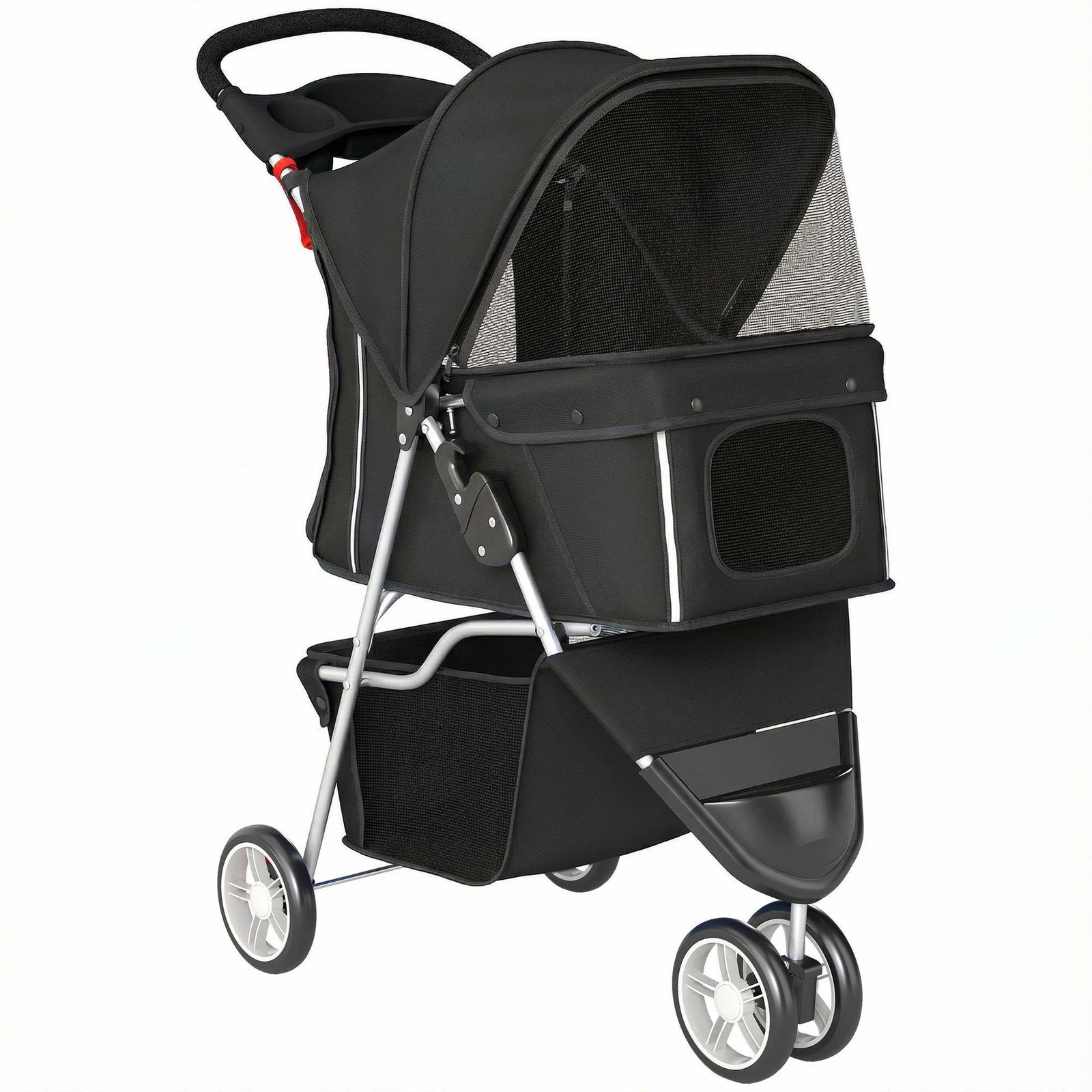 Sammenleggbar hundevogn med oppbevaring for små hunder, svart