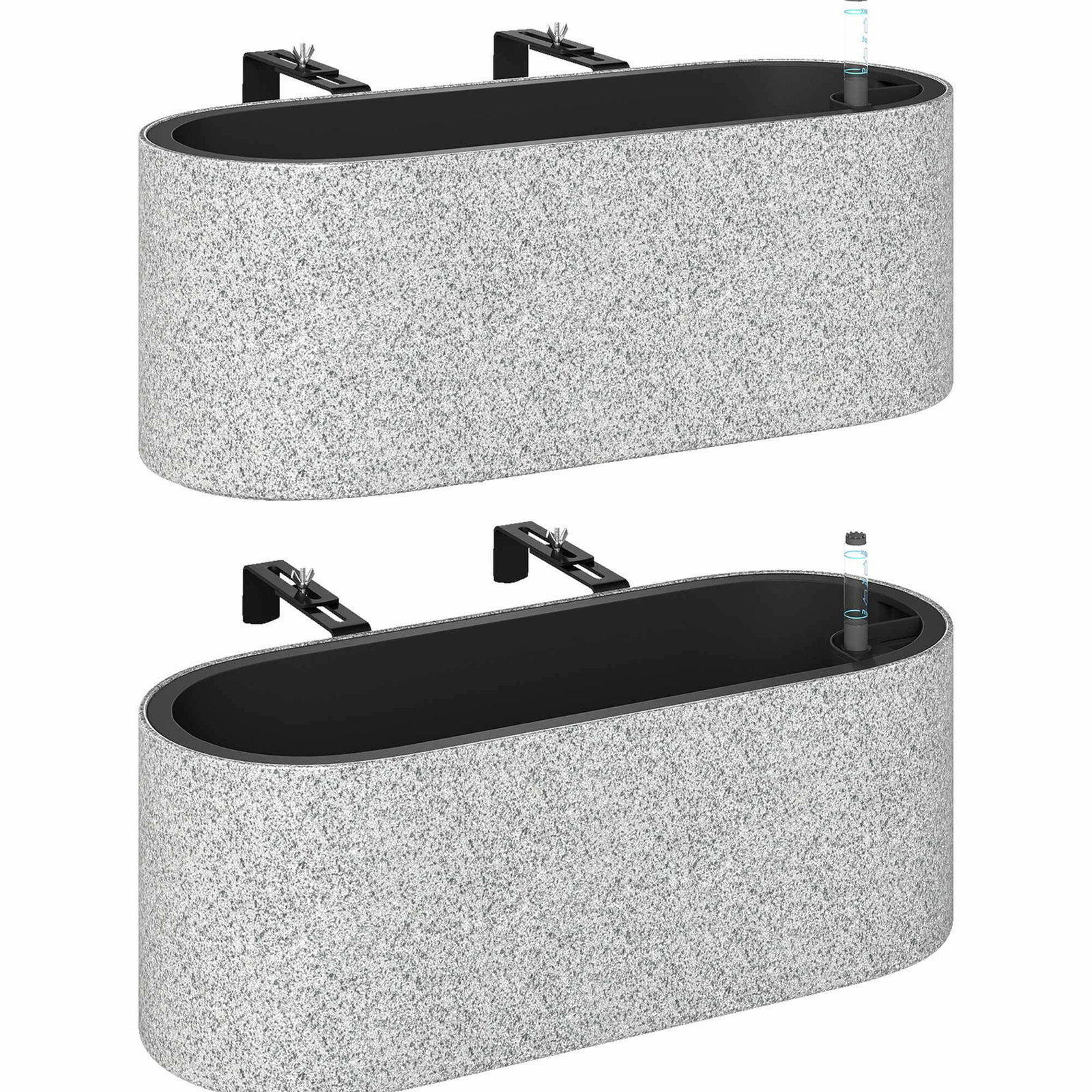 Hengende plantekassesett med drenering, lysegrå, 42x16x15 cm