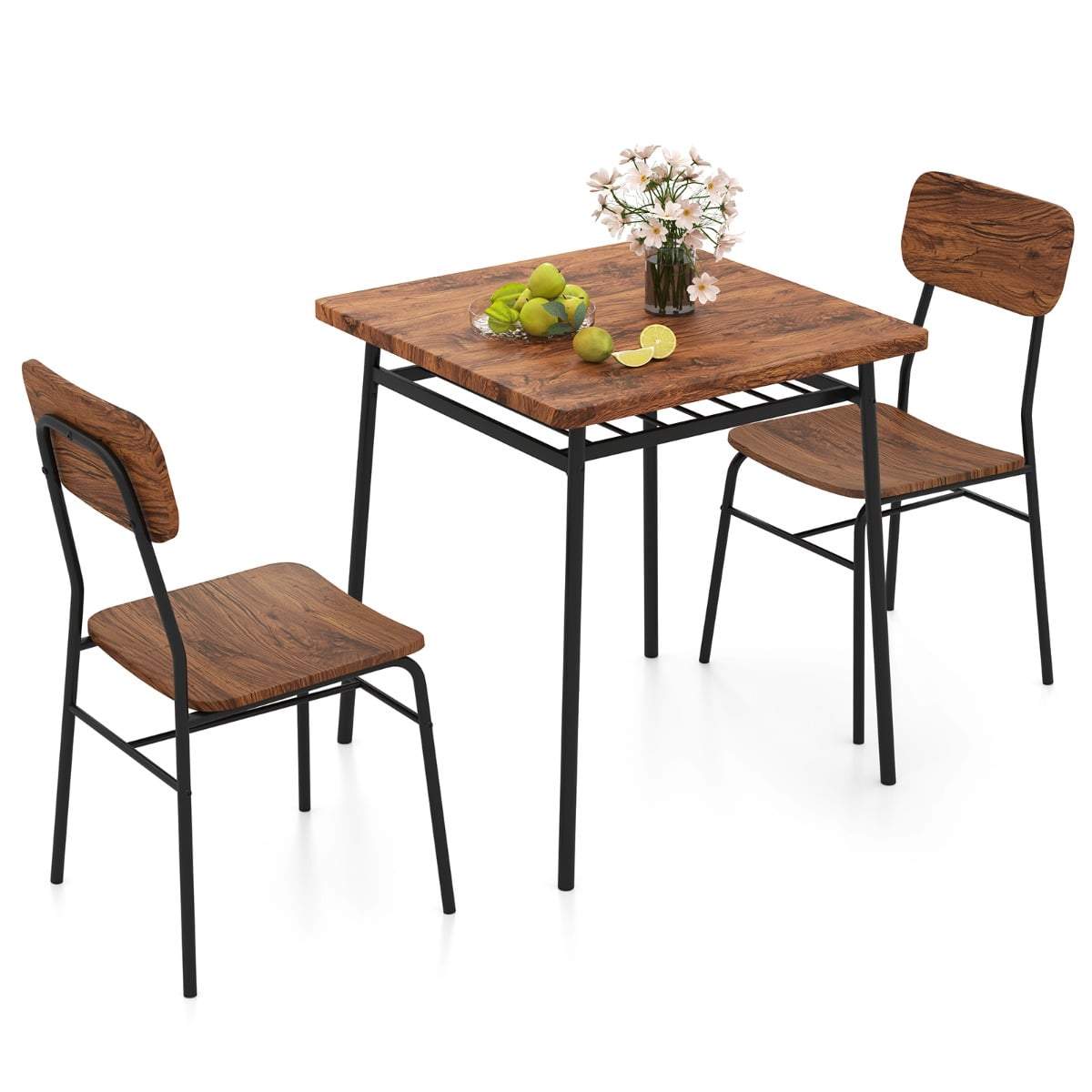Plassbesparende spisegruppe med oppbevaringshylle og 2 stoler