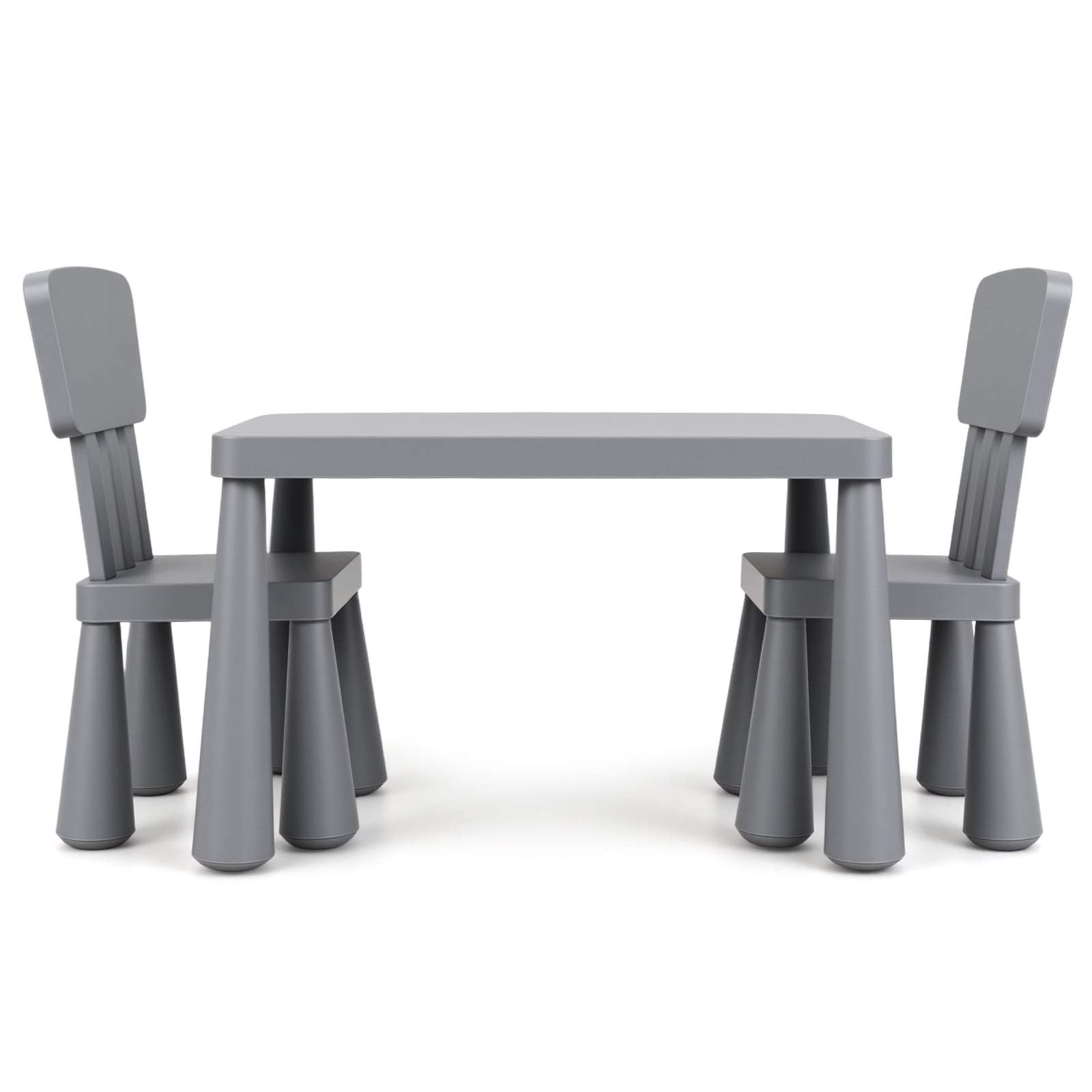 Barnebordsett – grått, 1 bord og 2 stoler, lett å rengjøre