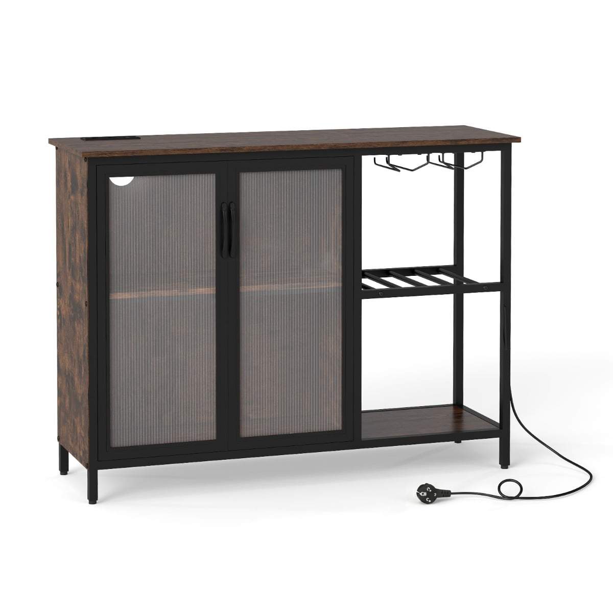 3-lags platespillerstativ med vinyloppbevaring – rustikk brun
