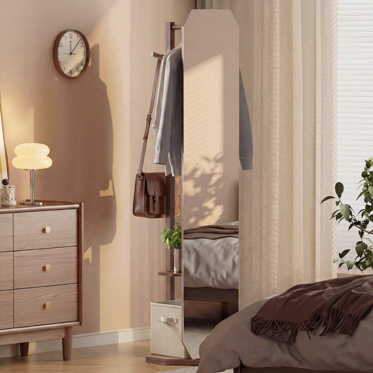 Heldekkende speilstativ – roterende garderobe, valnøtt