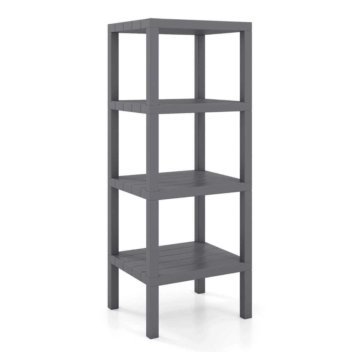4-etasjers slank oppbevaringshylle i plast – grå, enkel montering