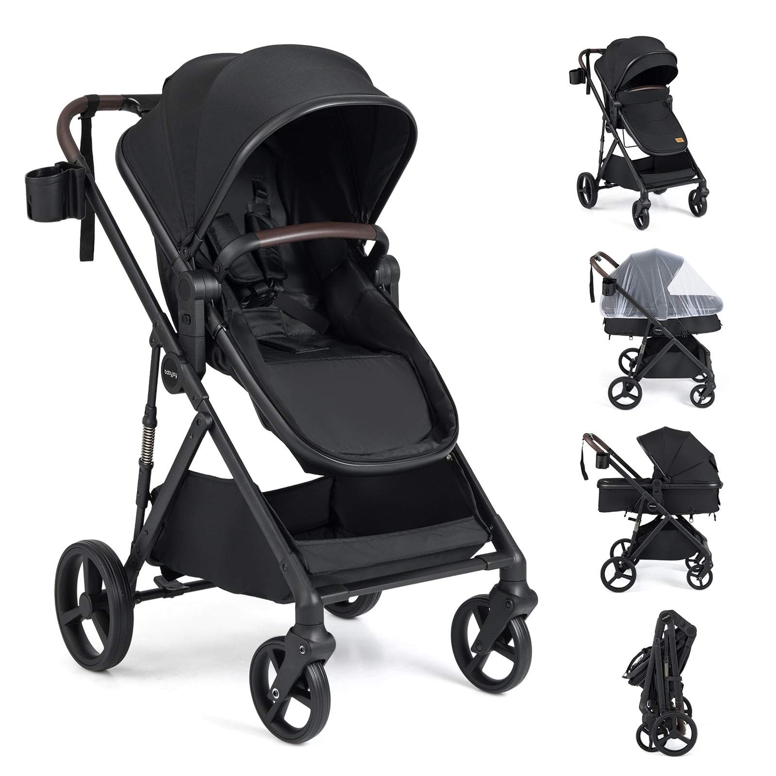 3-i-1 sammenleggbar barnevogn med vendbart sete og lenestol