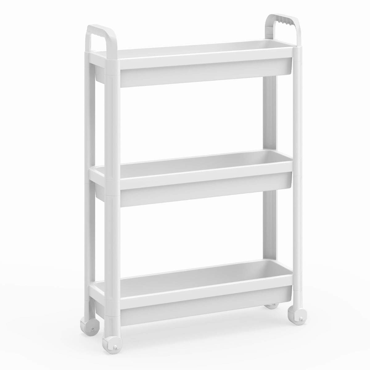 Slank 3-etasjers rullevogn – hvit, plassbesparende oppbevaring