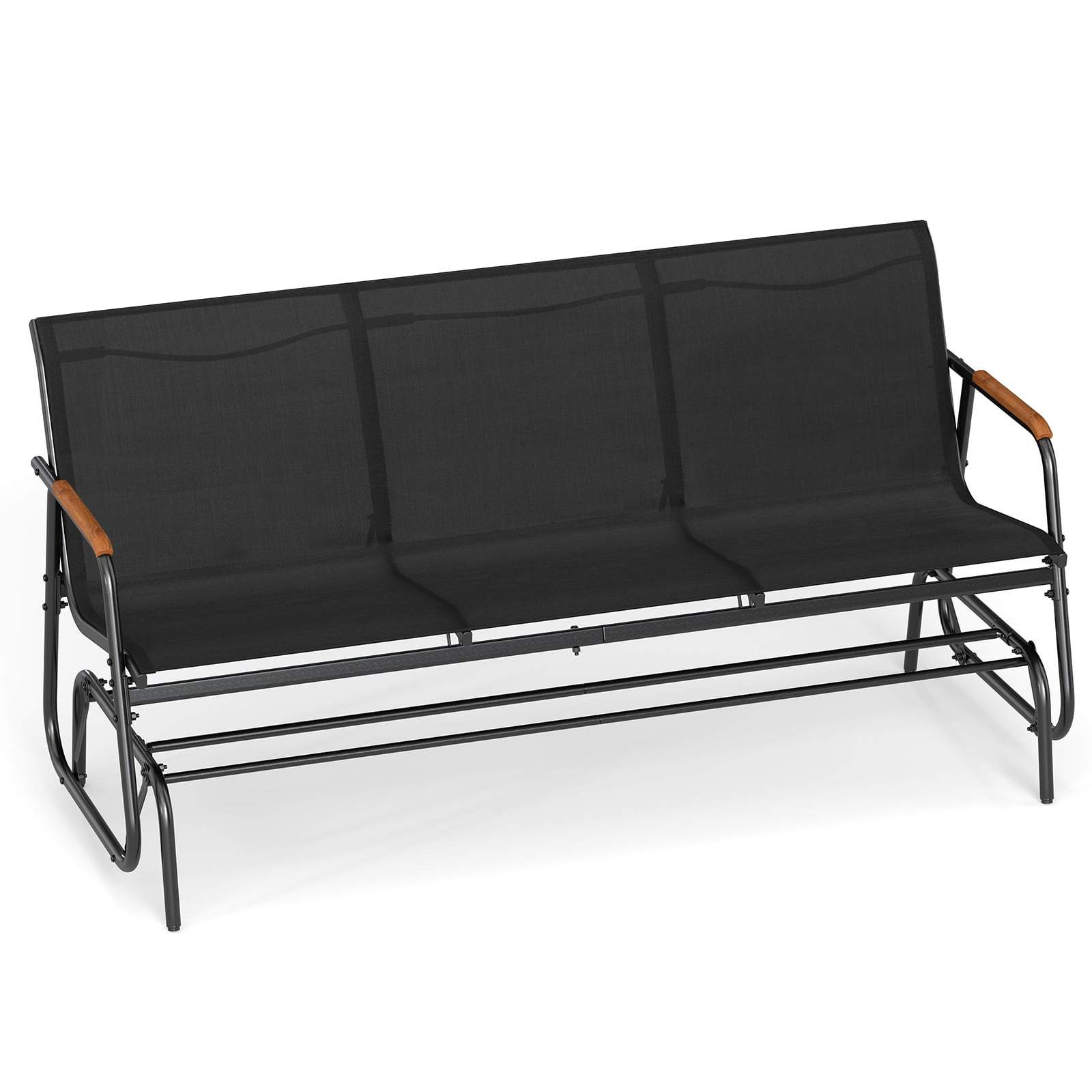 Utendørs huskebenk for 2 – armlener i teak, svart stoff