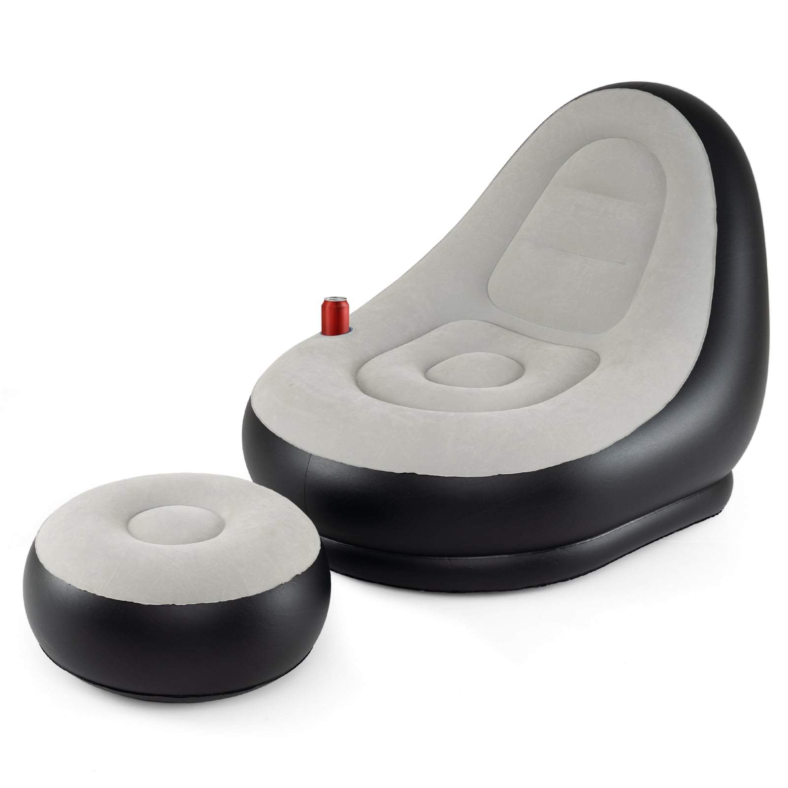 Oppblåsbar stol med fotskammel – velouroverflate og koppholder