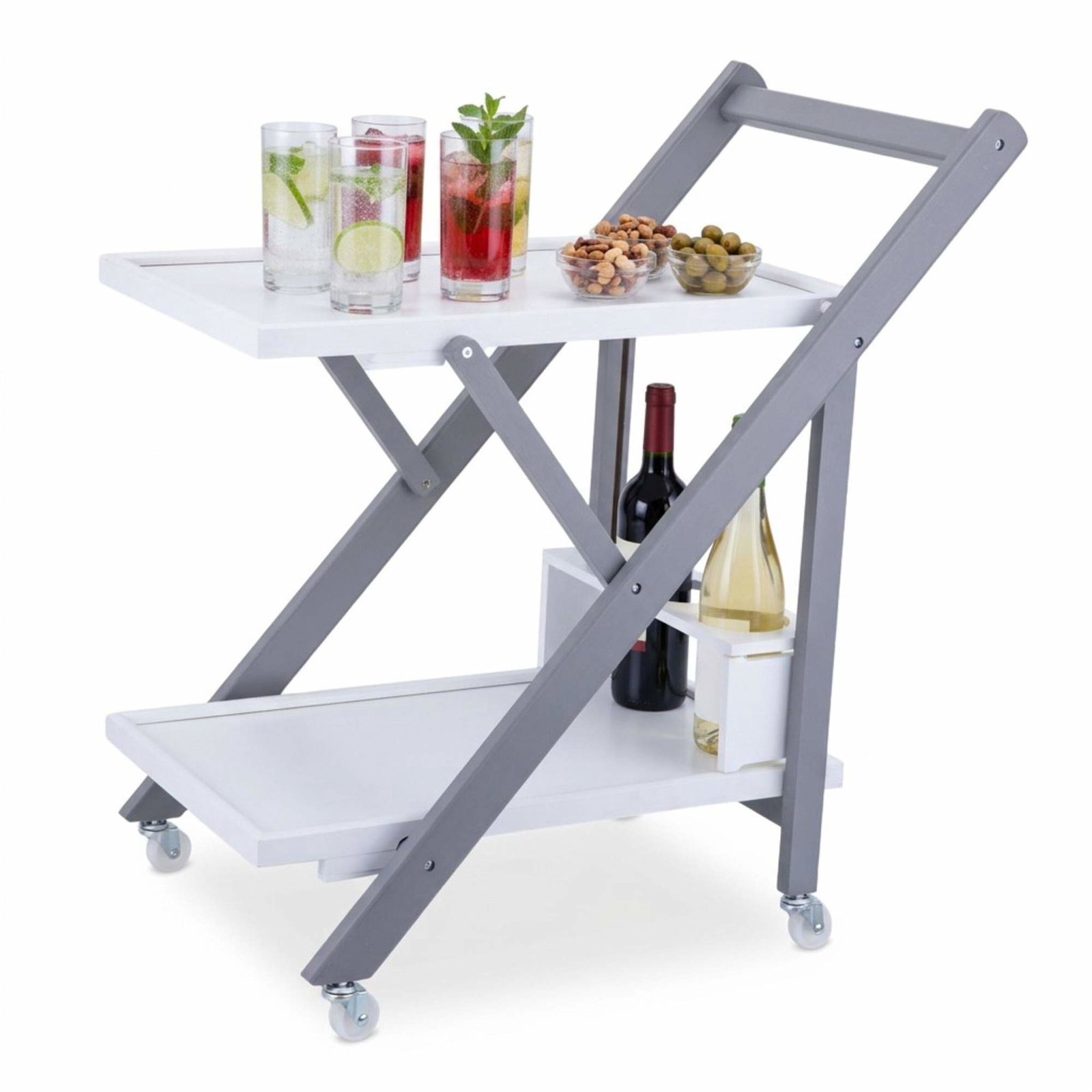 Bambus serveringsvogn med 2 etasjer og flaskeholder