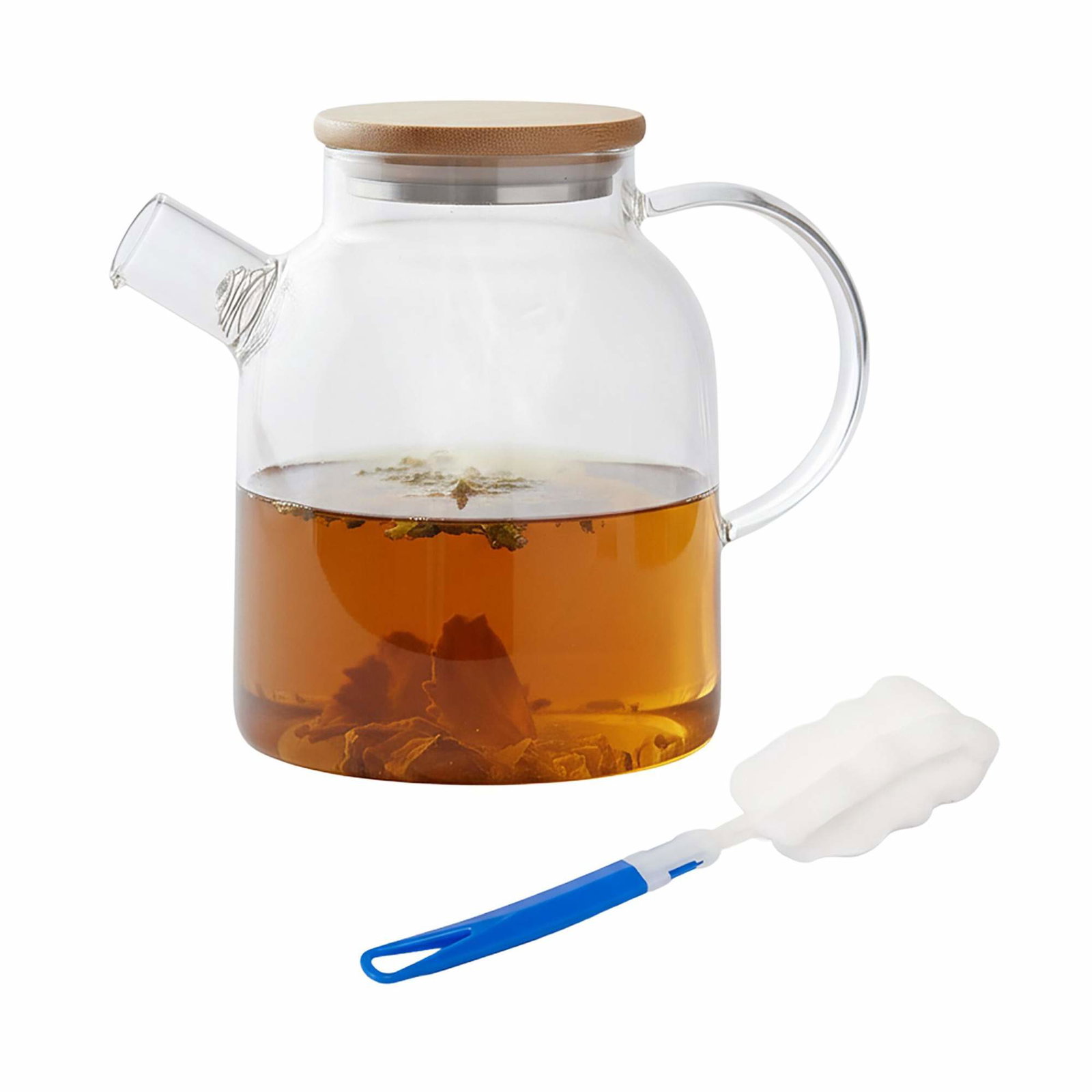 Glass tekanne med bambuslokk – ideell for løsbladet te