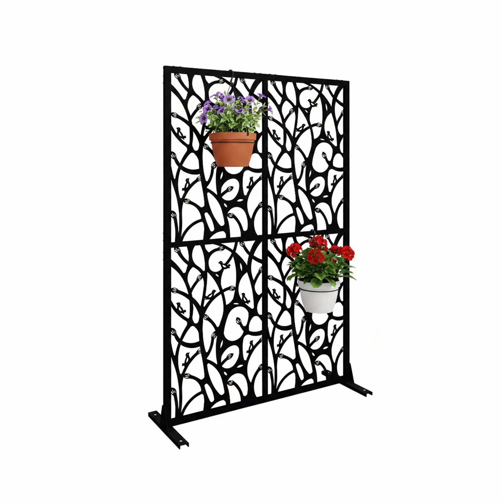 Svart hageskjerm – bladmotiv, utendørsdekor