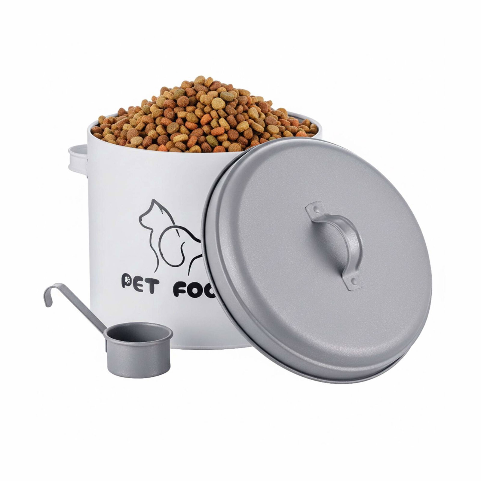 Oppbevaringsboks for kjæledyrfôr med lokk og skje – metall, lufttett