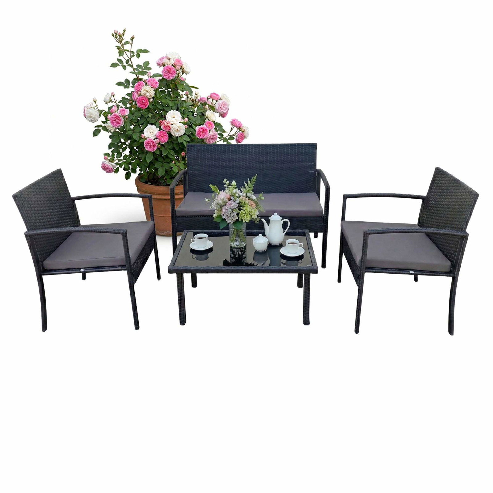 4-delers værbestandig rotting hagemøbelsett