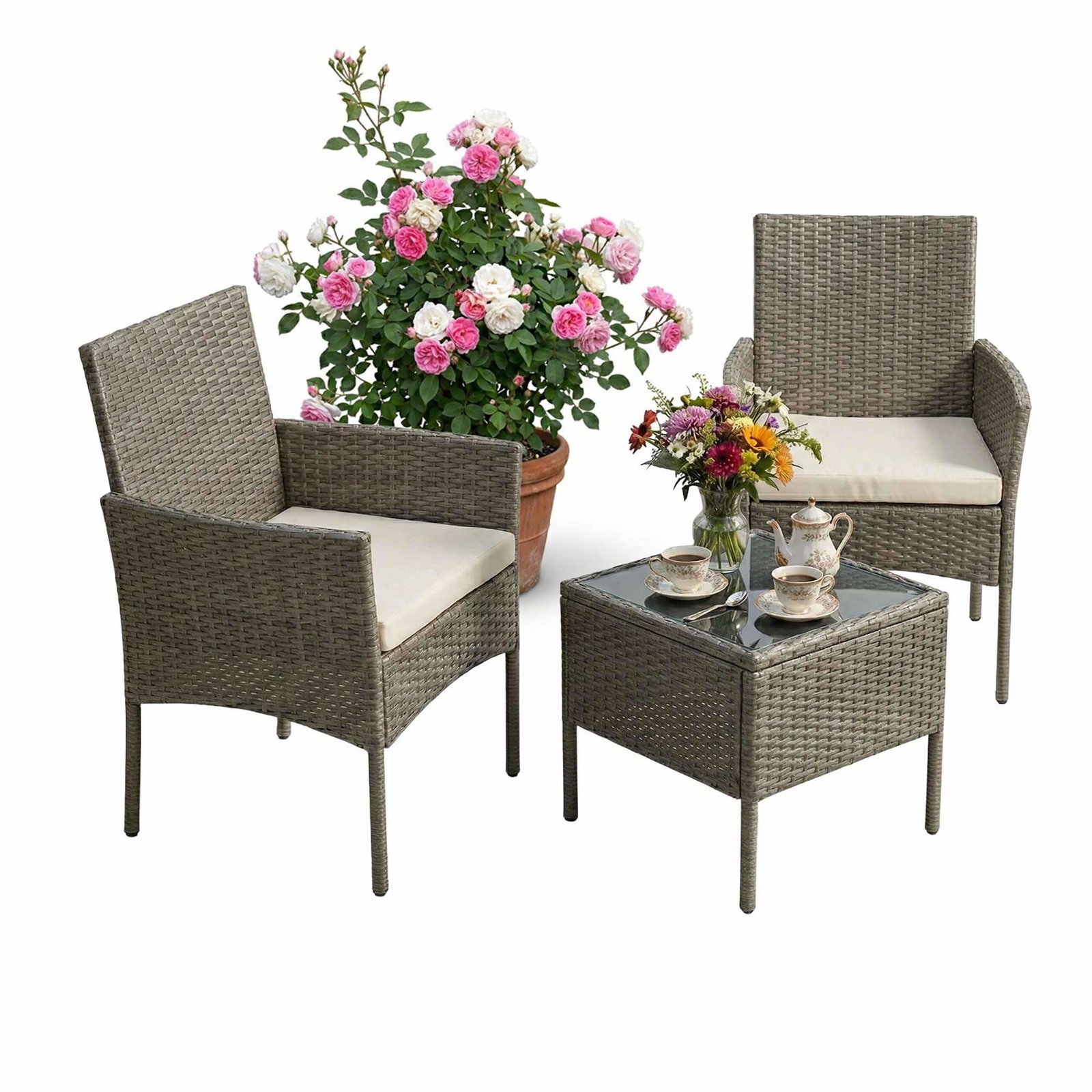 Rotting hagesett – 3 deler, værbestandig, polstret
