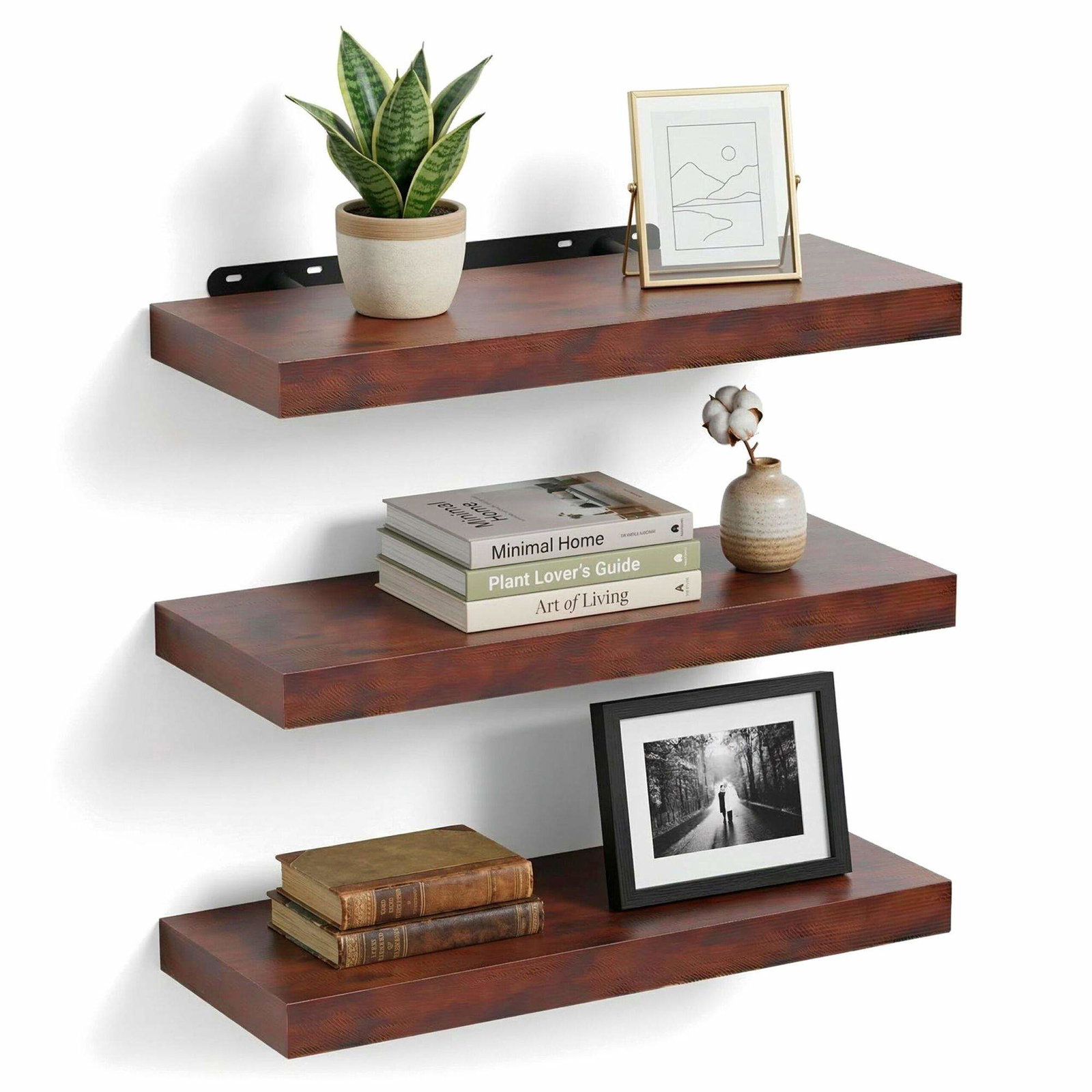Vegghyllesett – Utstillingsplanter, bilder, ornamenter