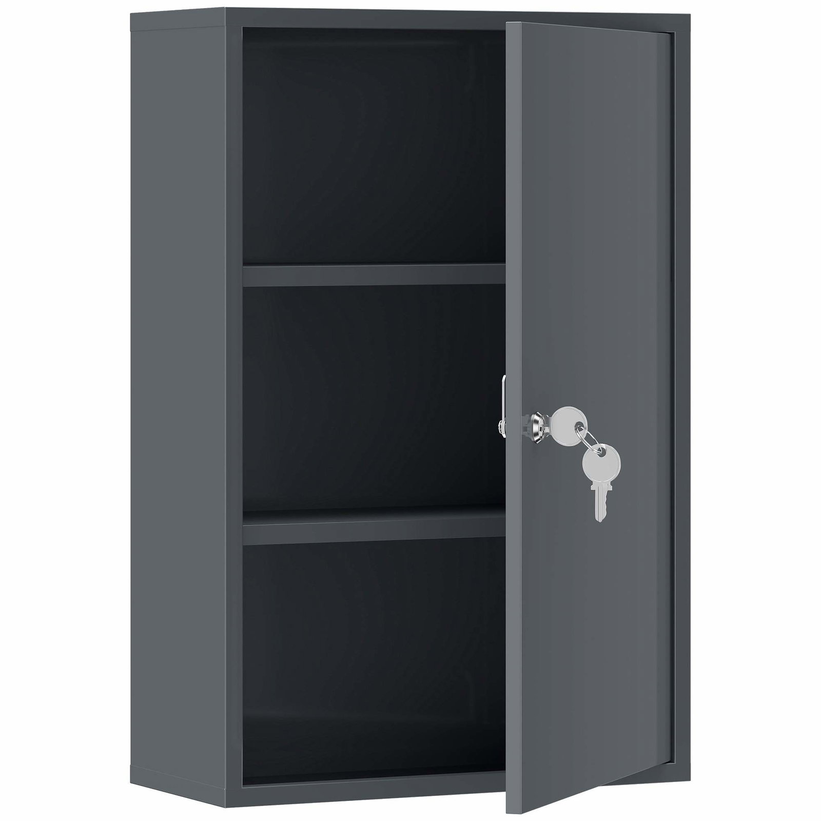 Veggmontert medisinskap – låsbart, 3 hyller, grått