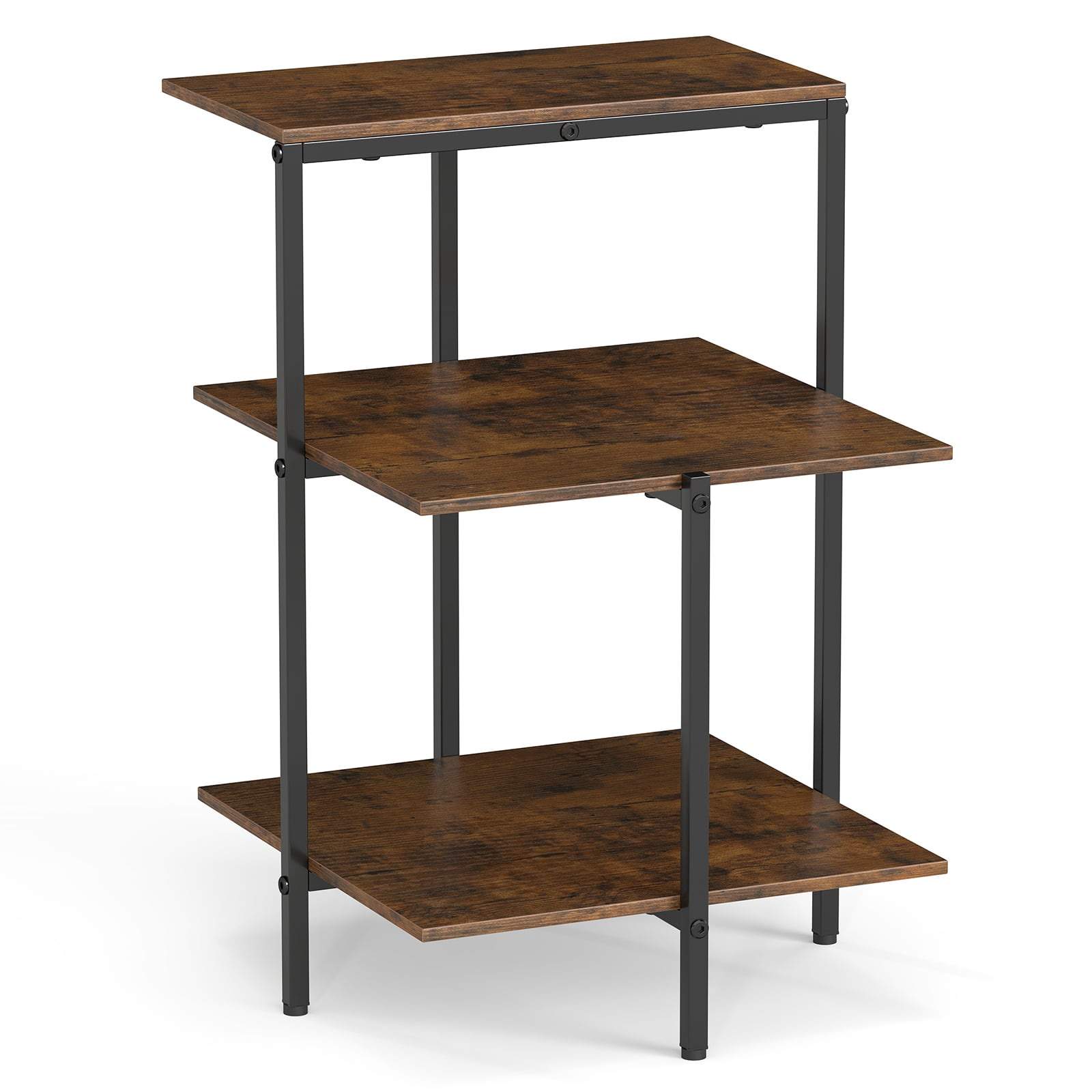 Rustikk brunt sidebord med 3 etasjer og åpne hyller