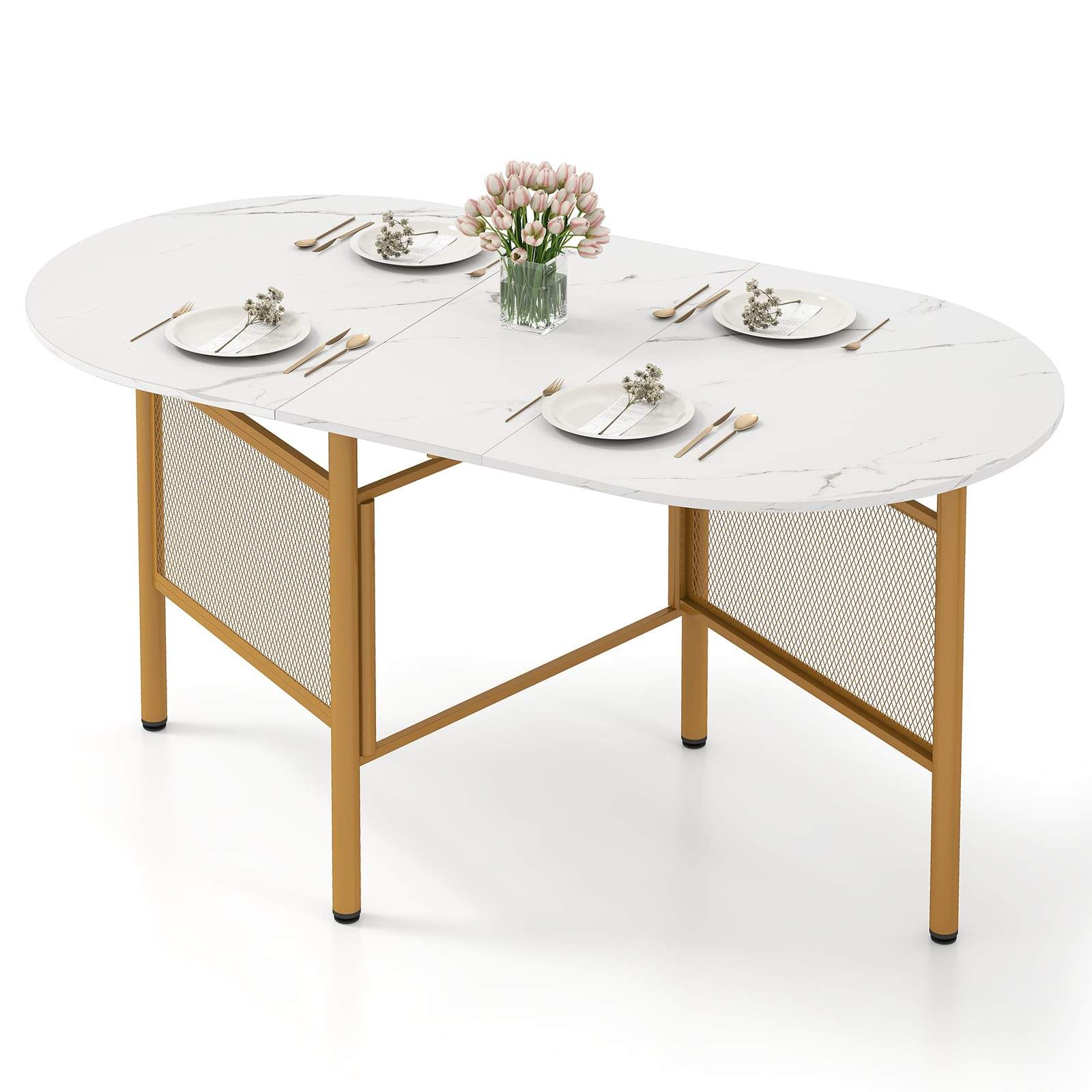 Sammenleggbart spisebord for 6-8 personer, plassbesparende, hvitt og gullfarget