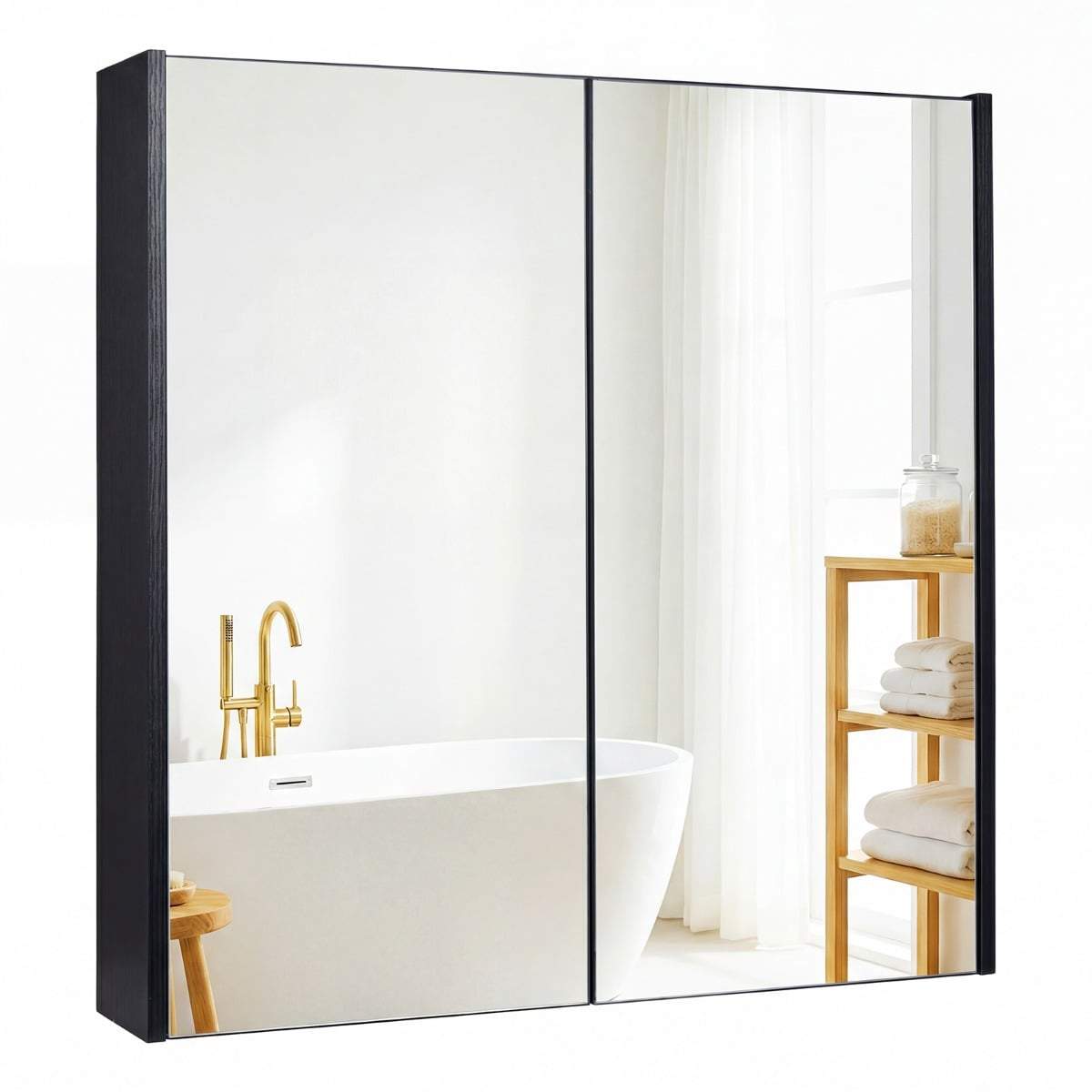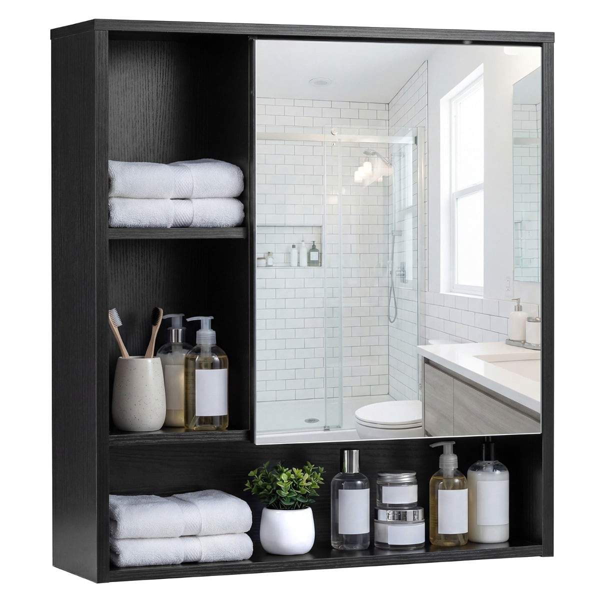 Speilskap til bad – svart, 3 åpne hyller, veggmontering