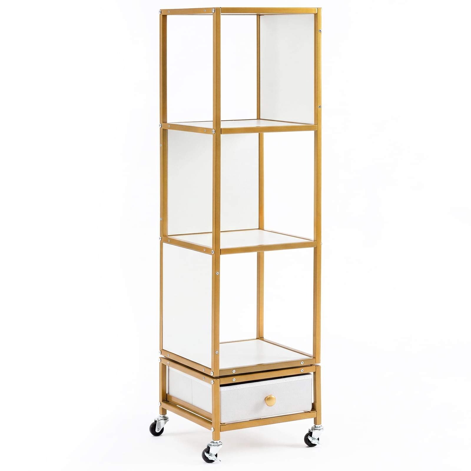 4-etasjes roterende bokhylle med skuff – hvit, mobil