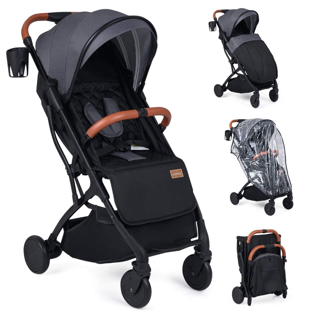 Sammenleggbar barnevogn med regntrekk og justerbart sete