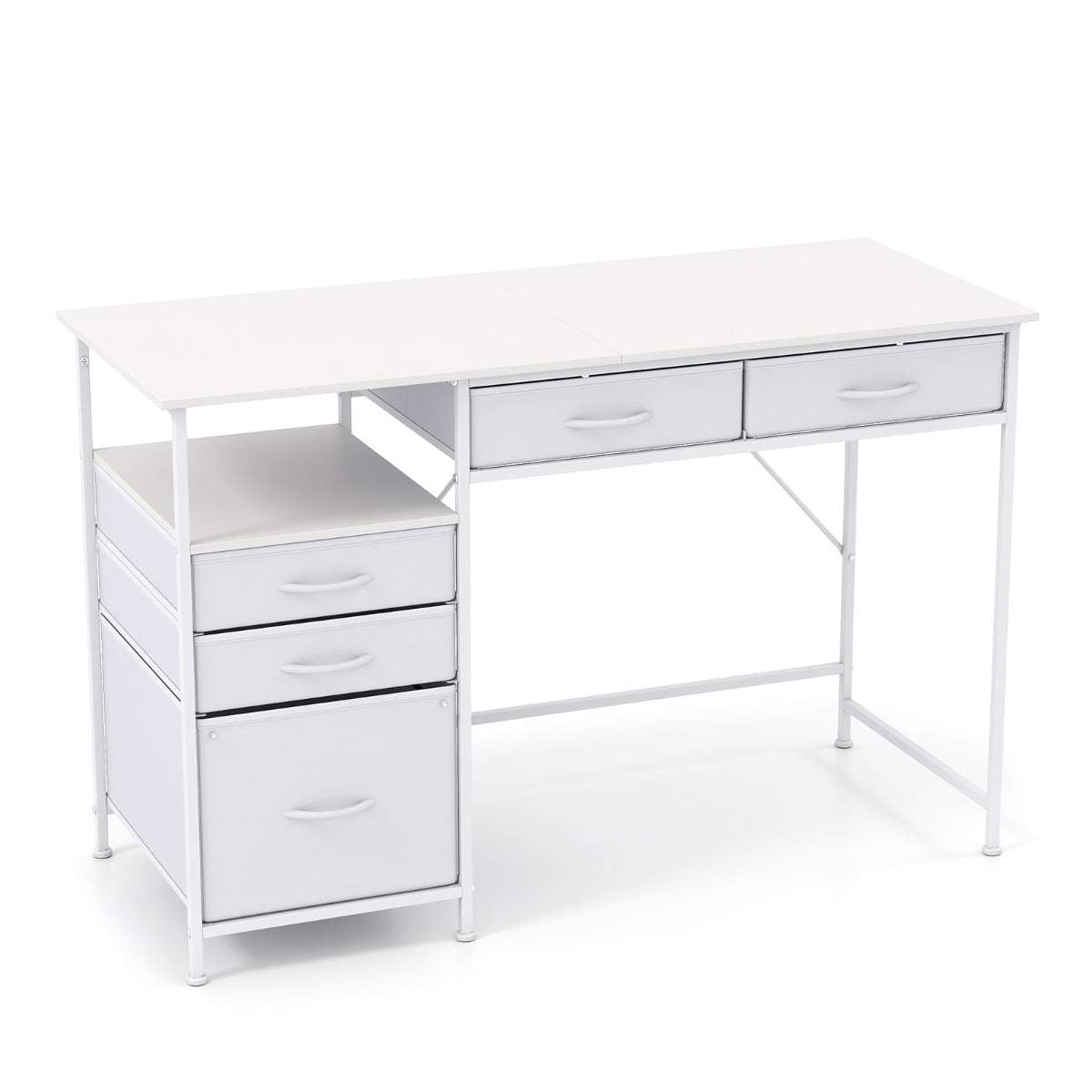 Hvitt skrivebord med 5 stoffskuffer – Kompakt hjemmekontorløsning