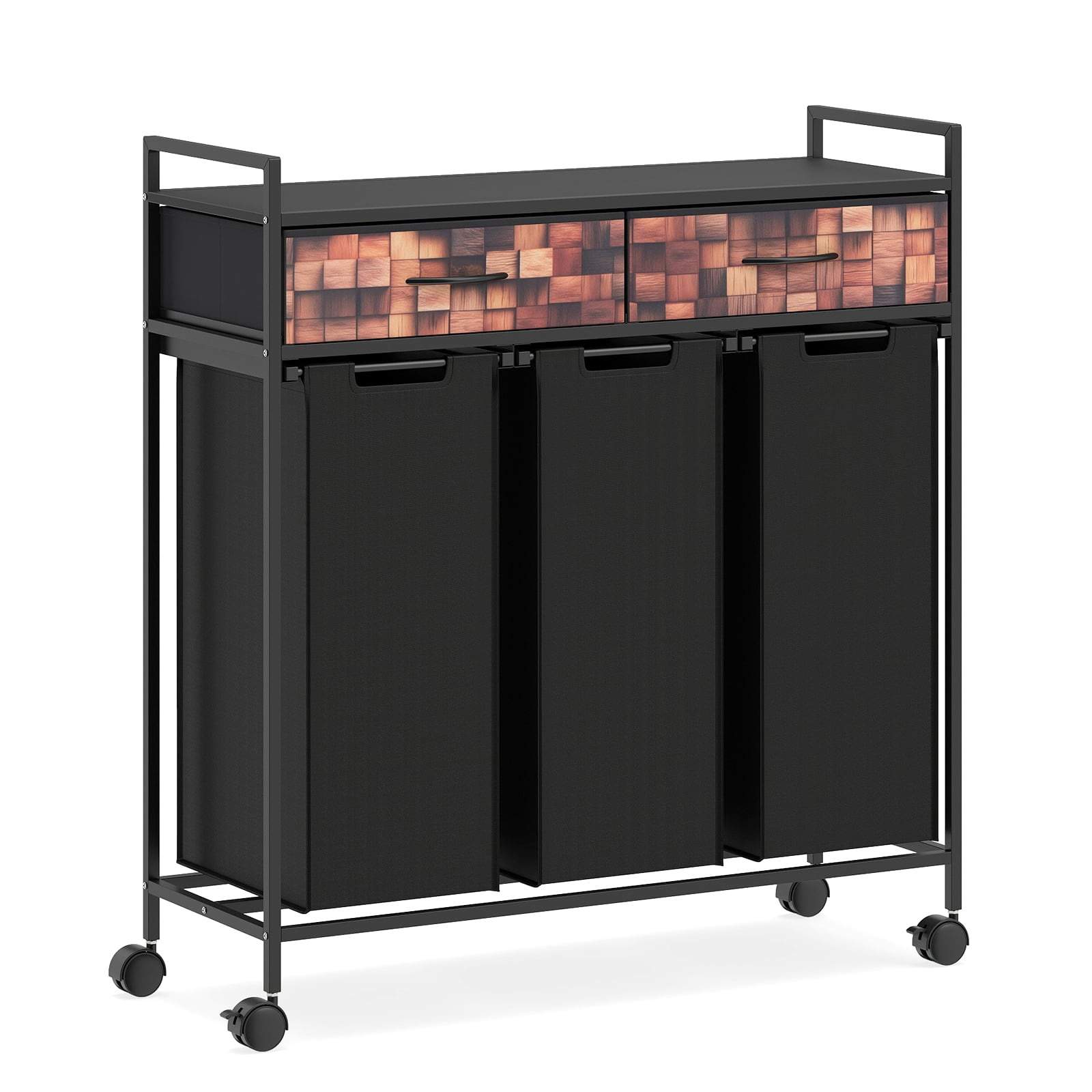 3-seksjoners rullende vaskeromsvogn – 135 l, svart og rustikk brun