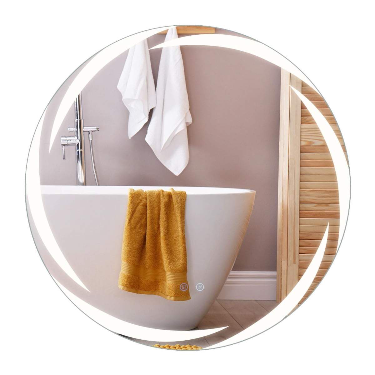 Rundt LED-baderomsspeil – 70 cm, antidugg, dimbar
