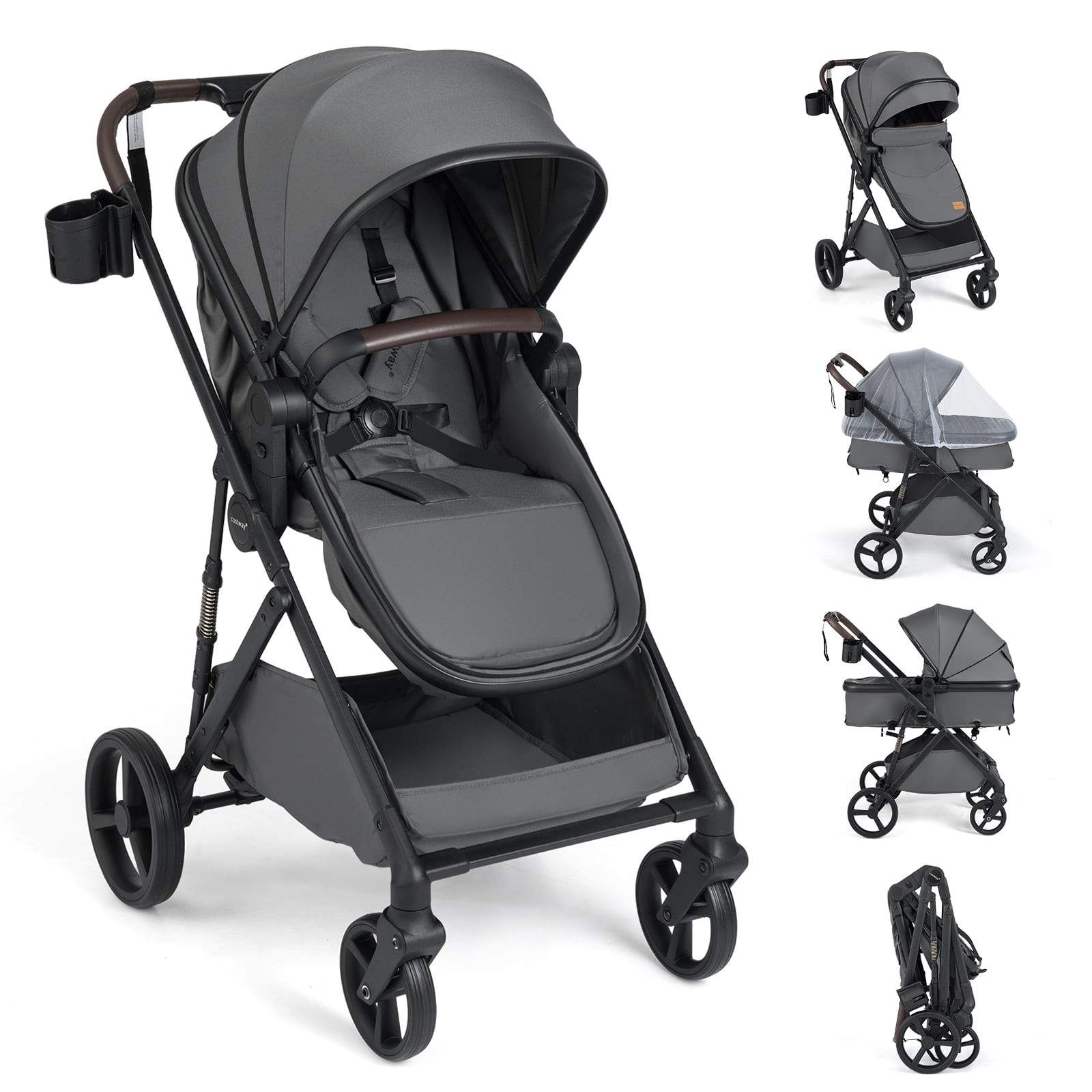 3-i-1 sammenleggbar barnevogn med vendbart sete og lenestol