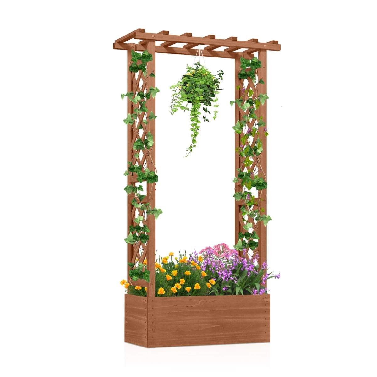 Frittstående treplantekasse med espalier og tak