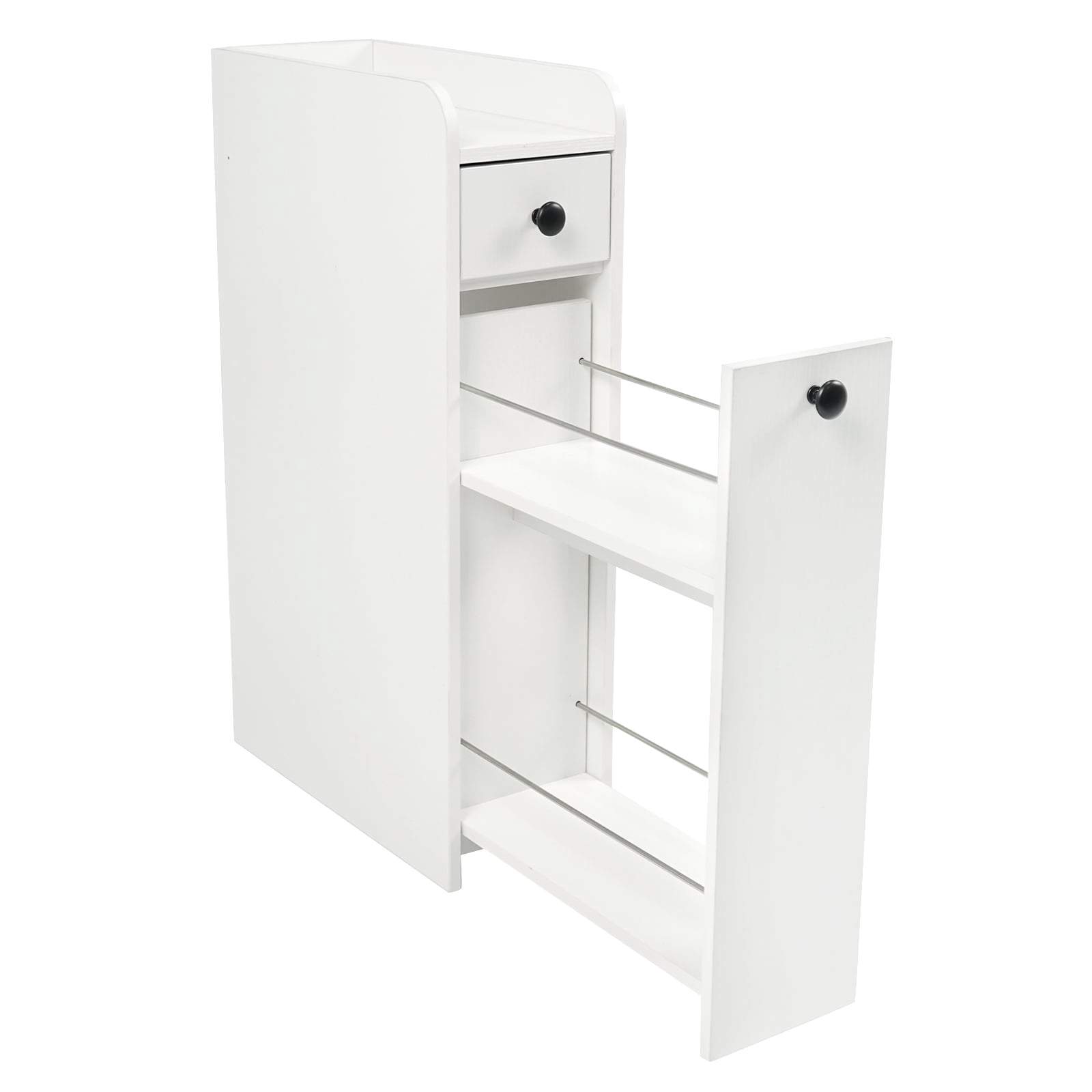 Slankt rullende baderomsskap – hvitt, 2 skuffer, åpen hylle