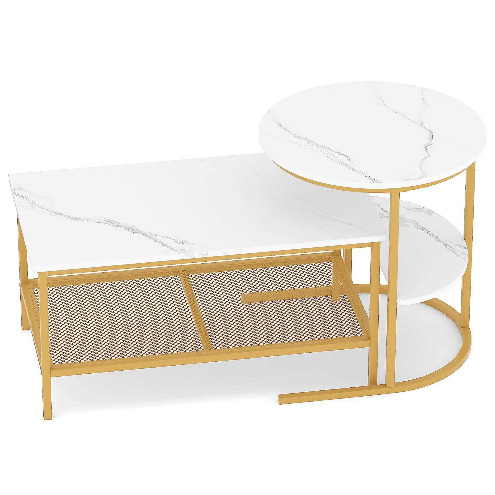 2-delt salongbordsett med topper i imitert marmor