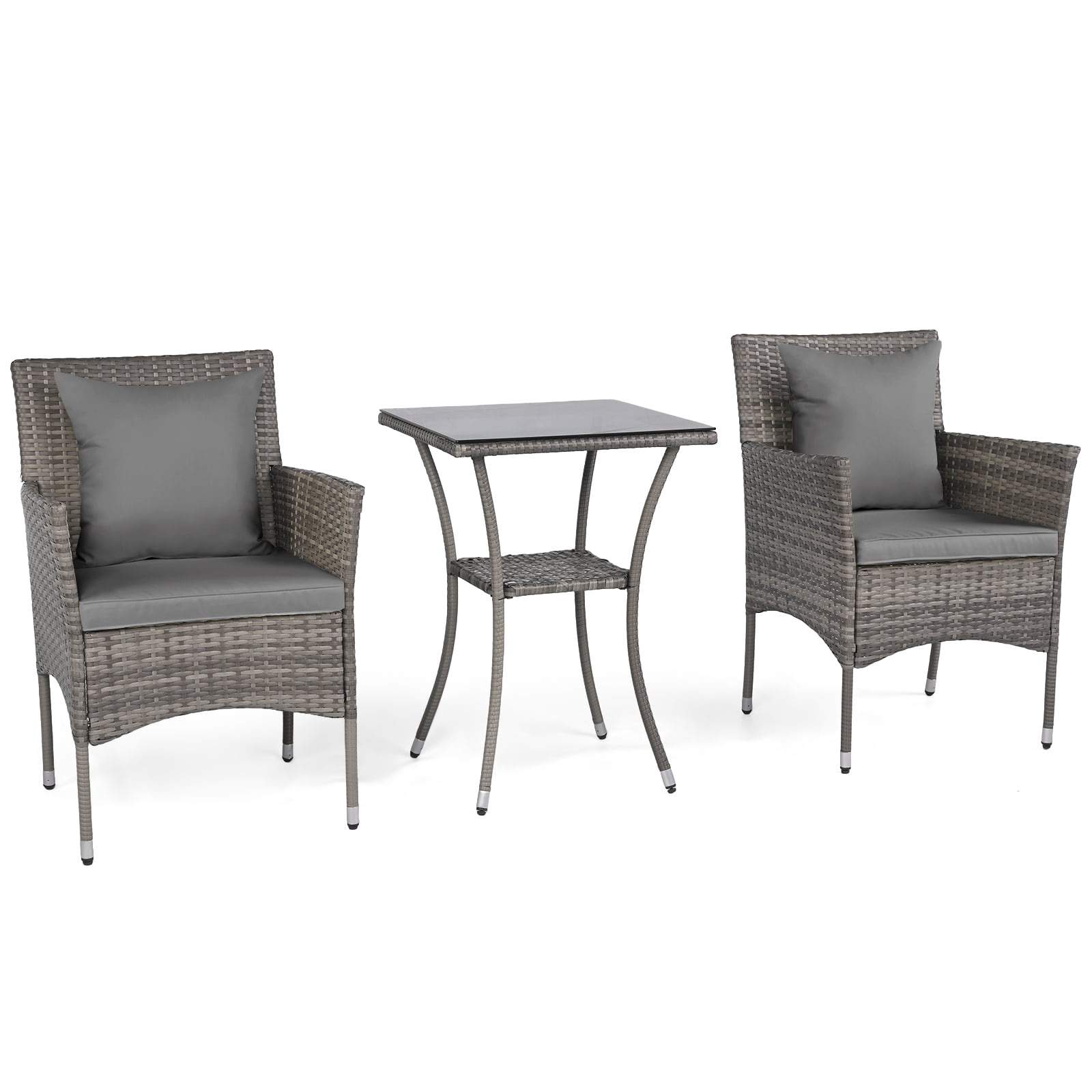 3-delt rotting terrassesett – 2 stoler og glassbord