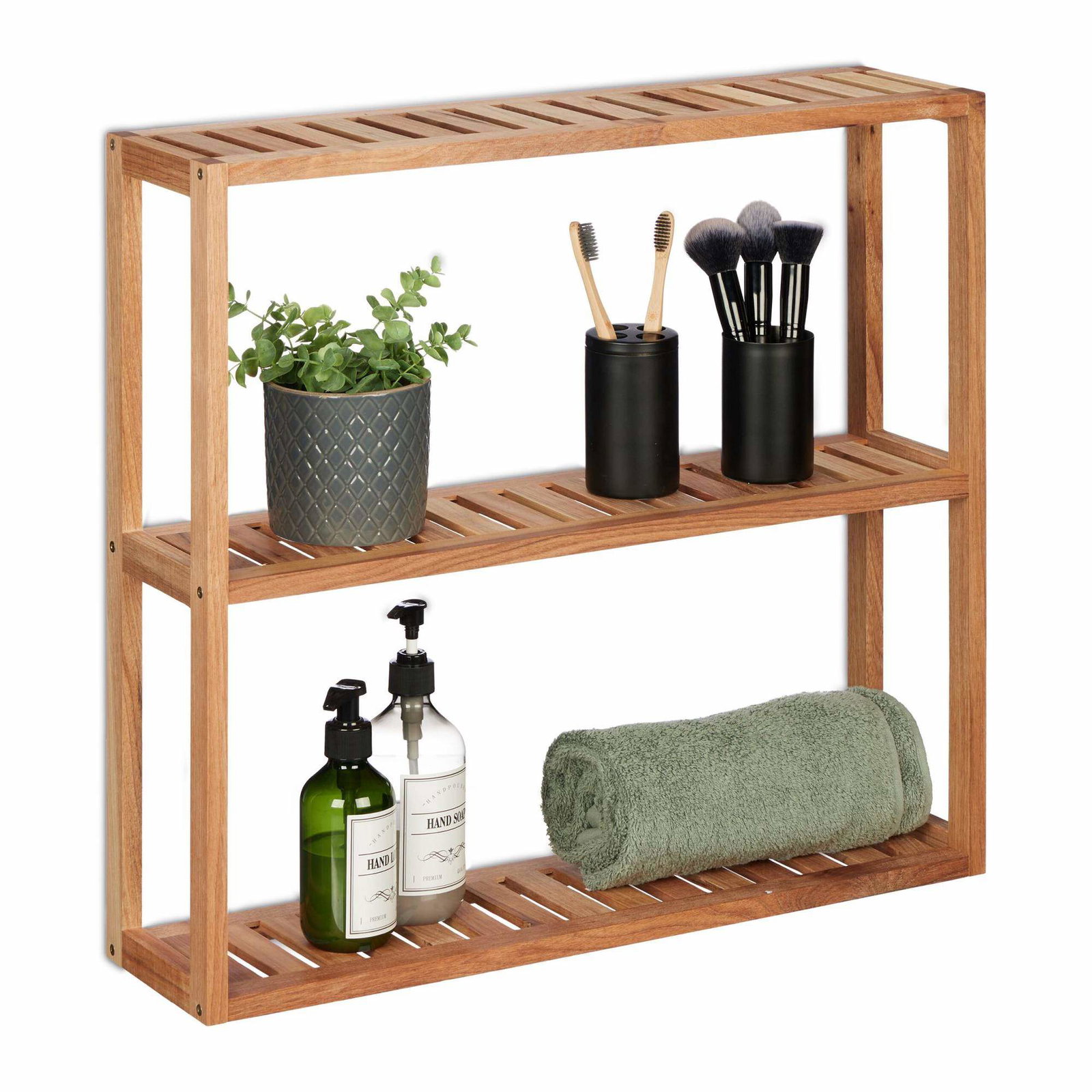 Smal vegghylle i valnøtt – oppbevaringsenhet med 3 etasjer