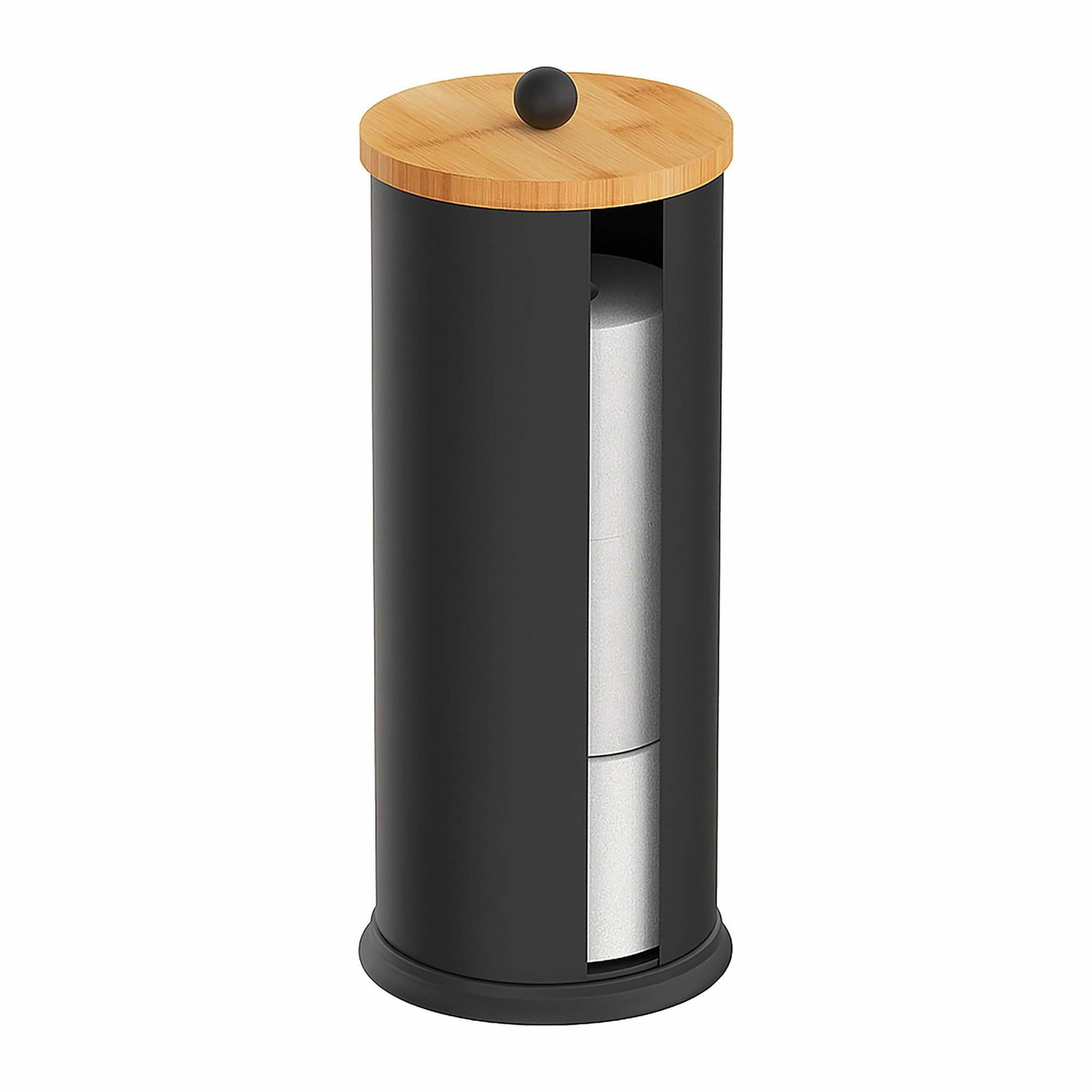 Toalettpapirholder – metall, bambuslokk, rommer 3 ruller