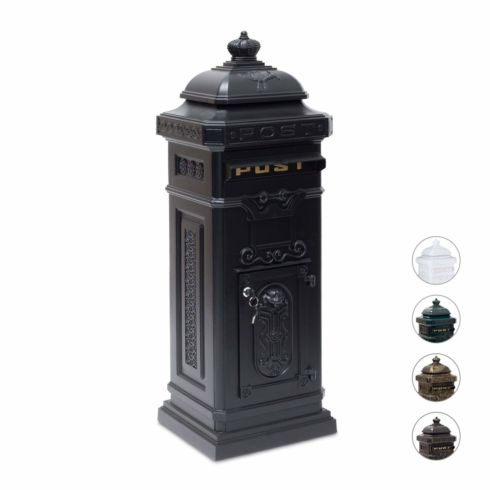 Frittstående postkasse i støpt aluminium i antikk stil